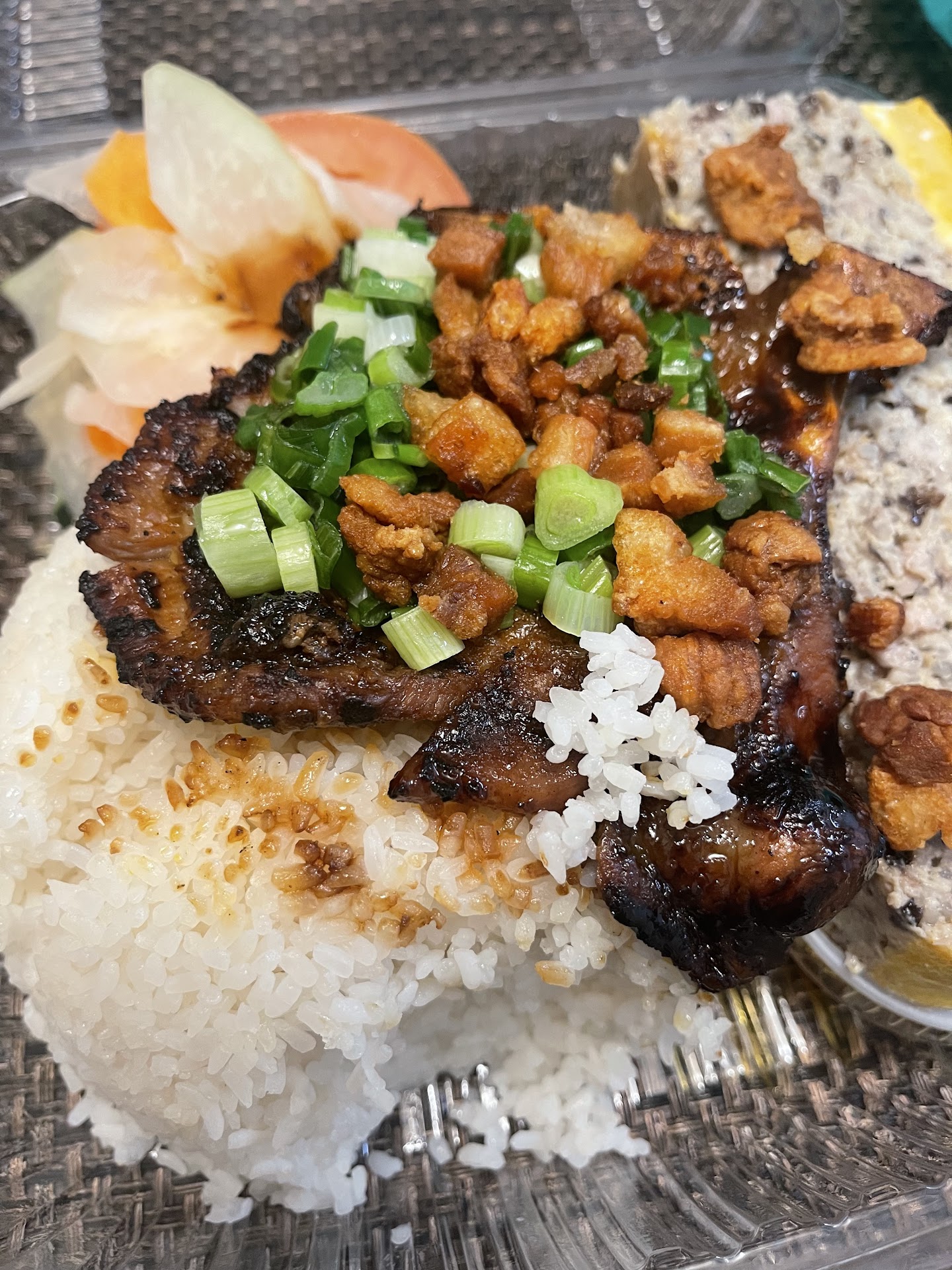 Com suon - meat was tender, sweet, and well seasoned. Pickles were delicious. Nuoc mam (fish sauce) had a sweet garlicky flavor I’ve never tasted before in nuoc mam. I want that nuoc mam recipe!!!