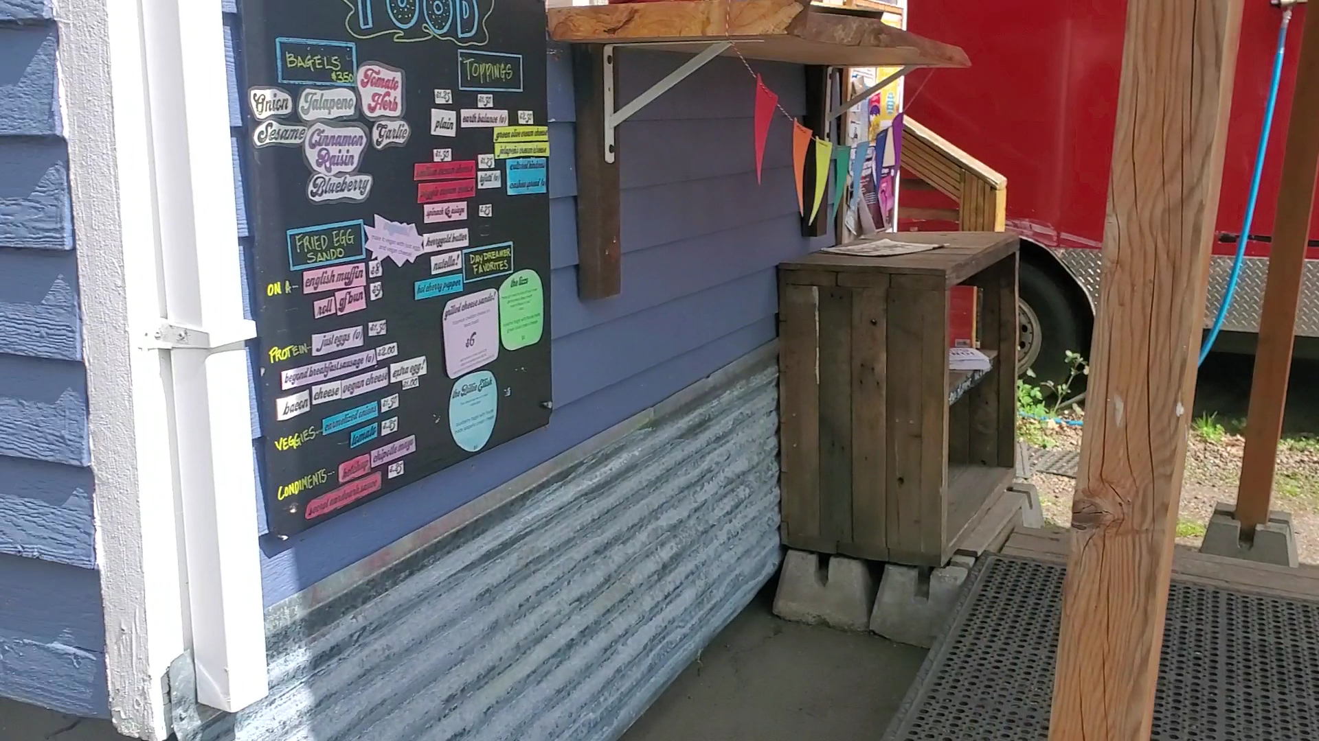 There is a covered outdoor area, with picnic bench styled seating. The owners recently opened a newly-renovated indoor space in the adjacent building, which also serves as an event space.