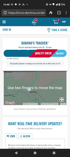 Read moreSo I ordered a hour ago. Now, I have ordered from a different place. I understand that things happen. But will gladly accept a refund. There is no way I'm going to wait. The main issue is that you guys have charged my card, and have not explained if you can commit to the service you do, such as delivering pizza. If this is a one time out of your control thing I understand. Still going to need that dough back. There is a issue with accepting a credit, other than crediting back my account the money you were paid, and did not commit to doing in the time frame you stated. I was able to go and get burgers, eat them and still have not been updated. It's been over two hours now since you charged me and said a pizza is coming in 30 minutes. I will never order from you guys again. 11/17/24 6:20 I got a email saying that my pizzas were delivered, and they had a "deal" for me to make the delivery all better. You didn't deliver. And from the pizza tracker you did, just not at the location I ordered the pizzas to. That location you show as the area you delivered is well over a hour away. If you couldn't deliver I could have walked down there at like 2 pm. It's a 5 minute drive with heavy traffic to my house from the pizza place. Why does the tracker show this and you emailed me saying you delivered. I called the local store where my order was supposed to be fulfilled by, and was on hold for 20 minutes, didn't get a hold of anyone. 11/17/24 7:10pm, after ordering some pizzas at 1:56pm. I'm currently on the phone again with the store that didn't deliver. I have been on hold for over ten minutes after the initial person was like " let me get my manager". Do you guys have to hire them 1st? I more than ever deserve my refund. Also, I'm not sure why your system says a different time. It was 1:56 pm...