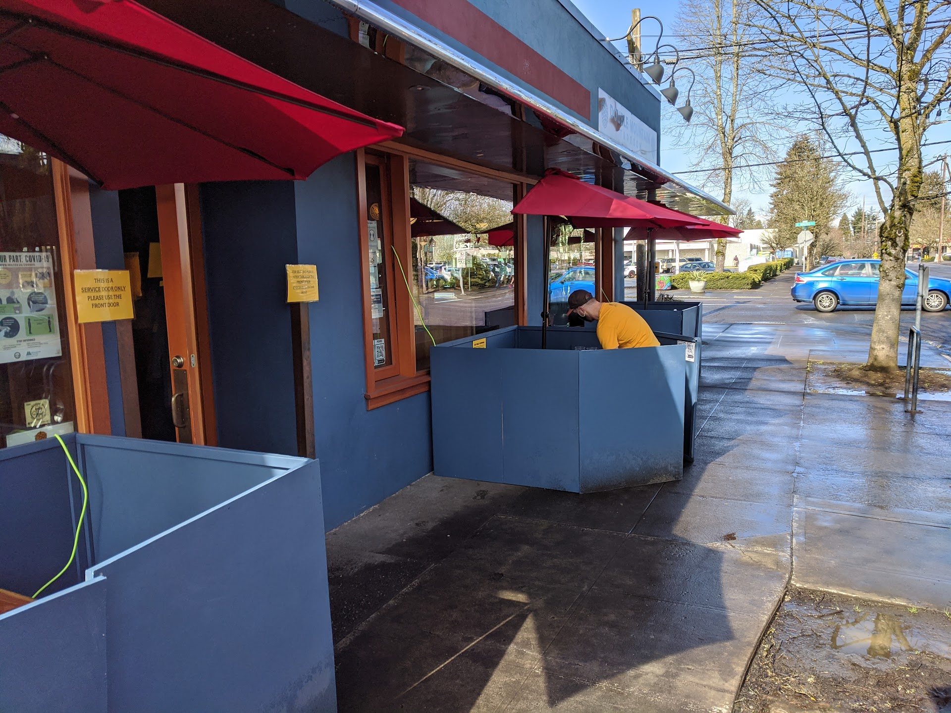 Visited early March 2020 with some (vaccinated) friends. While sitting inside was allowed we weren't comfortable with that yet so we sat at one of their outdoor corralled picnic tables (the ones up along the side of the building with temporary walls around each). It was a very tight fit for 3 adults and 2 small kids, but we made it work. Tables are really meant for ~4 adults.