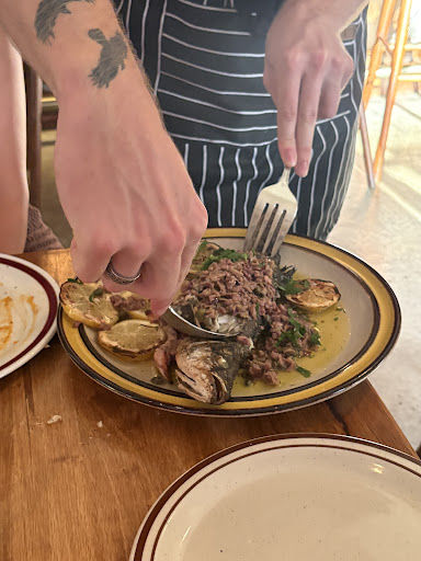Now to the food. Overall things were delicious with a couple standouts. The peach and burrata appetizer we had was fantastic with the hot honey and oil. Paired perfectly with the focaccia. Classic Caesar was also nice. The real star for me was the lemon bucatini pasta. Wow, at face value it appears to be a simple dish but the flavors were absolute perfect with the hint of lemon and creamy sauce. Could have had multiple bowls of that and would definitely order again. The pasta all vodka was good but not as much of a standout. The branzino too was tasty just a bit hard to eat with the bones and tapenade that adorned the fish. My gf loved it though and I know that’s typical for ordering a whole fish. Drinks were a solid cap to the night.