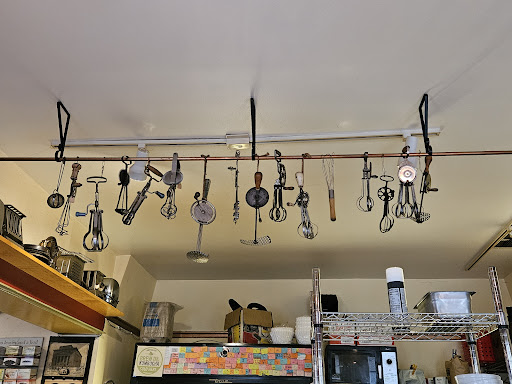 The German name is the surname of the late mother of the founders. She owned an antique shop next door until she passed, and now much of the store's upper reaches are dedicated to displaying her antique toaster and egg beater collections.