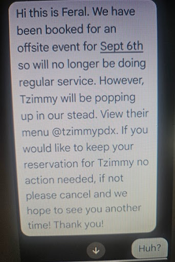 The people are nice and seem to genuinely enjoy being their to create good art and good experiences. There's real feeling of coziness coupled with a flare of fine dining expertise (without the super high price tag that makes actual fine dining out of reach for most folks). If you want to eat food made by people who not only care deeply about their craft and are continually pushing their art in interesting directions, and you want to support a business that is truly breaking a lot of industry norms, whilst staying true to their identity and values, then Feral is your spot.