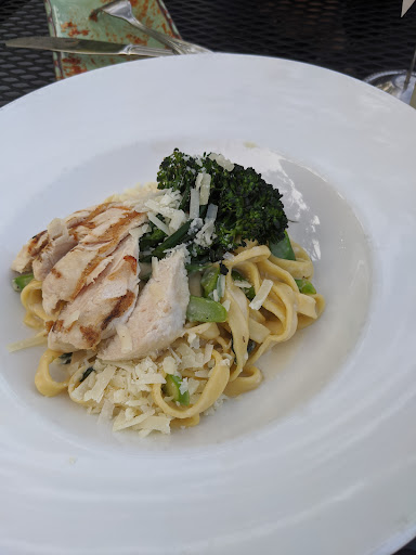 For $130 lunch had on of the least memorable meals ever. Our starter, garlic knots, were OK but nothing to write home about. Fettichini Alfredo was soupy and tasted like no Alfredo I have had round the world. Spaghetti was OK but the meatballs were way over done. Beer (Hefeweizen) and wine were both good