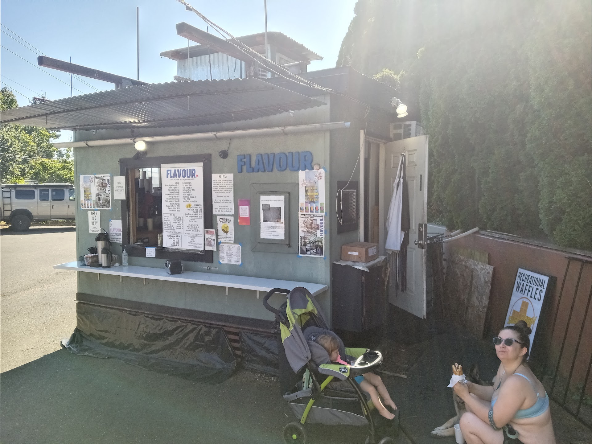 Read moreMy favorite quick stop for a handheld waffle and Local Portland Roasting Coffee in north Portland, Kenton’s neighborhood. They have sweet and savory offering. Today I accidentally purchased a meat sausage waffle, thinking I was getting veggie sausage (which was .50 cents more) he didn’t make me pay the difference. Very friendly! Only recommendation is to get a heater and place it near the ordering window, and one near the picnic table during these winter months... it would really help keep people coming all winter, something portable you could bring in at close...