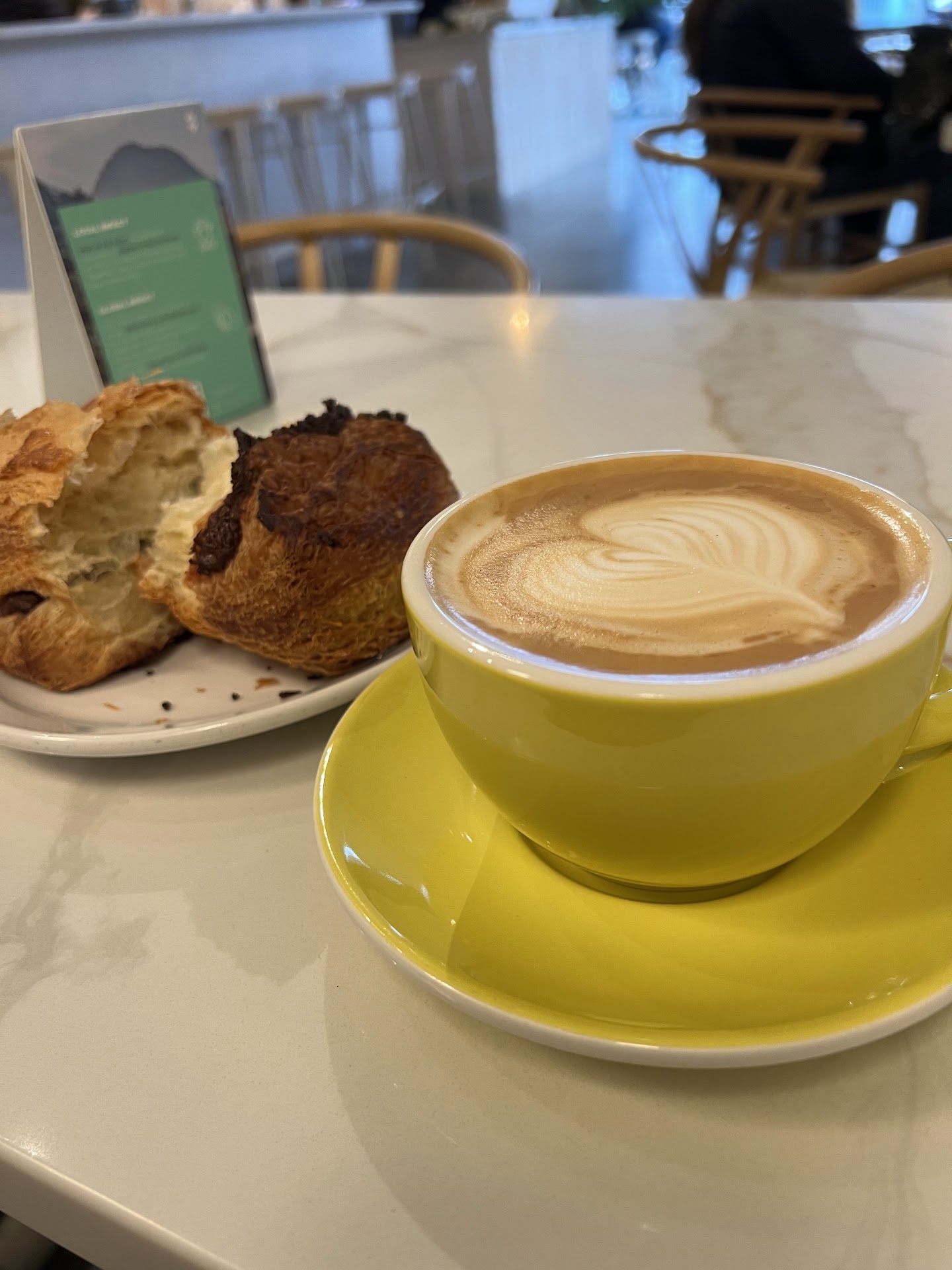 My first full visit. When I say full, meaning I'm actually sitting here taking in the vibe. It's a small place, but open to maneuver around. They have 2 bathrooms which is awesome.. I was here yesterday briefly and got a sandwich which I thought was very good! The paint colors and vibe is cool. As far as the coffee, I am not ecstatic about it, but it works. I am now having a vanilla Latte that seems weak. I'm also very picky when it comes to coffee and no one could please me unless I'm brewing it hahaha. The staff was really nice on both days I have come. I will say this....I appreciate them not changing the music to hip hop or Neo soul when I came in. There has been countless times I have went to cafe's in Portland that had an Alanna's Morsette type music vibe when I walked in and being the only black person in the cafe they would change the music to hip hop. I hate when they do that! However Futura stood strong and played a type of classic pop rock and upbeat dance hall music. If there is anything I would give a critical review about, it would definitely be the music!! As a person who enjoys reading and working in a cafe, the music played does not fit the vibe of the cafe. I believe the selection is based off of what the employees like and not what those who are working there may like or need to have a better experience. I would suggest some low fi music or cool jazz that's calm and gives the cafe a mellow vibe instead of a club or drag show feel. Other than that, I'm sure I will be coming back because the staff are nice and the location is convenient to many of the places I frequent...