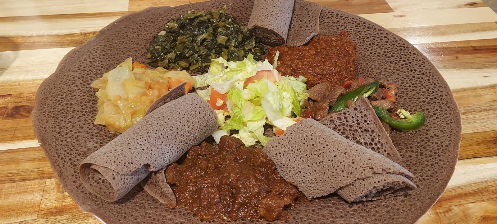 Updated 9/2025: No idea what happened here but this place is horrible. The "two meats and three veggies" is a joke - the menu won't state it, but you can only choose from three options, not the full menu. Asked for a Harar beer and was told they didn't have it. Funny enough, a party arriving after me also asked for Harar and got some. The St. George beer I did get was basically colored water and foul. The missir wot was lacking niter kibbeh and the gored was absolutely devoid of spice with the exception of garlic. Gored gored meat had the consistency of fat pieces and had a weird eucalyptus flavor. When this place was at its old location it was incredibly good. Now, I will not be back and definitely recommend against going here. Sad.