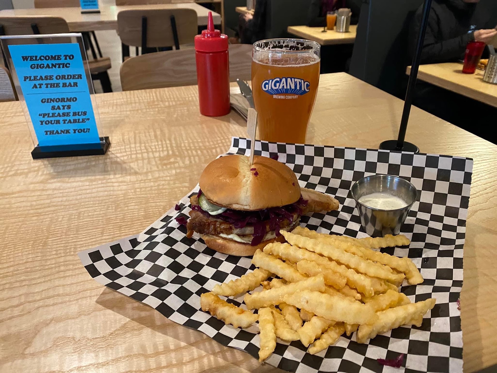 Read moreAt the brand new very highly anticipated Gigantic on Hawthorne. Love Gigantic beer! Says a lot about Gigantic when a city that does beer on the level of Portland is so excited about one new place opening! Plus this is their first location (of 3) that has a kitchen. Gotta say the food is really good too! Flaeskasteg Pork Sandwich (Carlton Farms roast pork loin with crackling, braised red cabbage, remoulade, dill pickle) with French Fries and a Sassy Pony Juicy Pale Ale. Also pictured is, The International Caramel Coffee Stout & Space Brontosaurus IPA (collaboration with Ecliptic) Gigantic has turned their kitchen over to El Viejon. I ordered the Flautas de Pollo and the Birria Ramen (Mexican/ Asian fusion) and an LP Stout. This was...