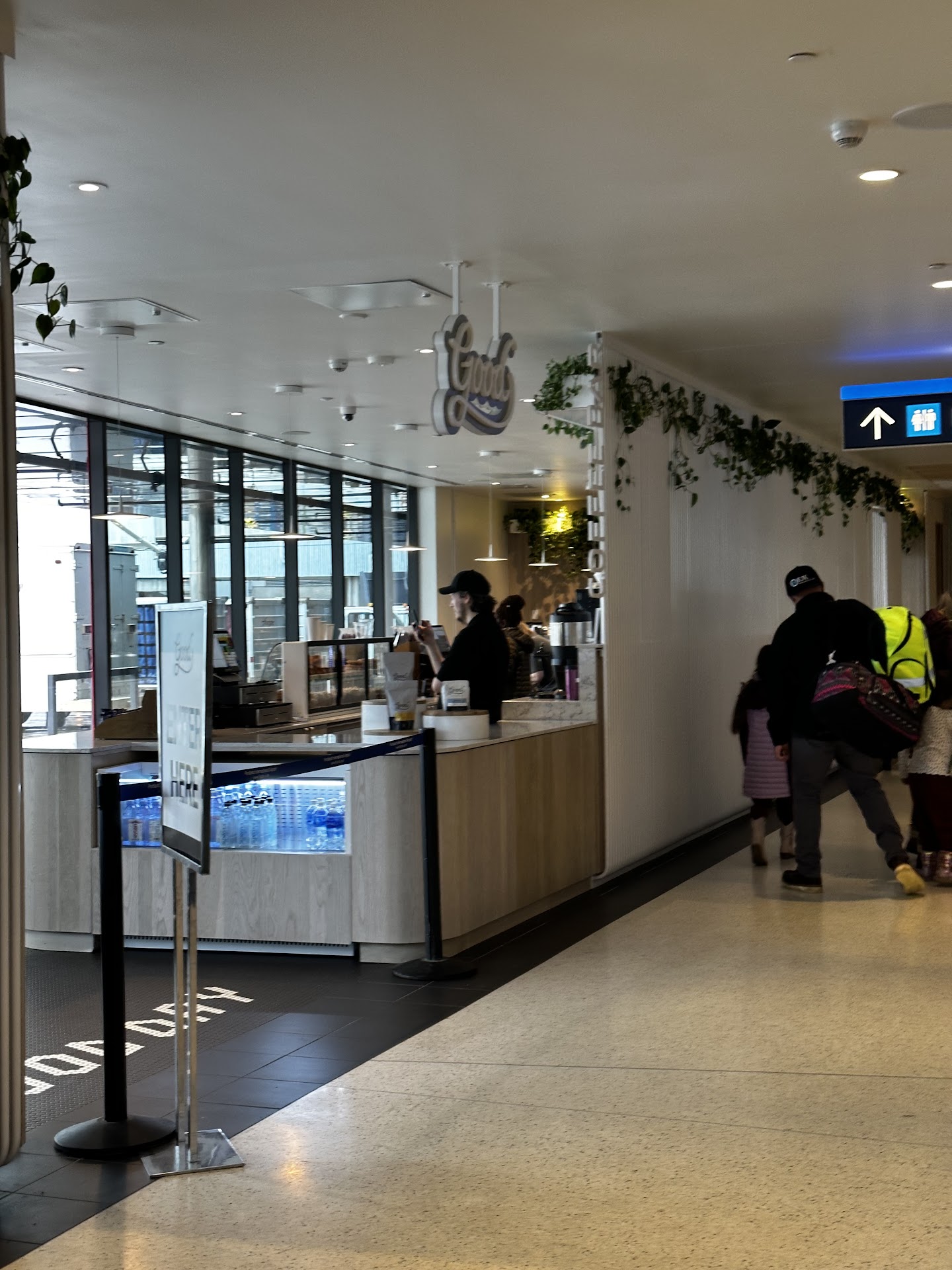 The ironically named Good Coffee, residing in a concourse far from the beating heart of the airport. On the frontier where there are few seats and fewer choices. Good Coffee looks a bit barren, not obviously a place for a hot drink.
