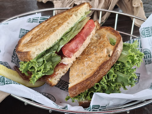 Grand Central Bakery--- a bit of a mixed bag , foodwise with an absolute SUPERSTAR standout. Conveniently located on Fremont in the middle of the Beaumont area of Alameda, Grand Central seems to be a neighborhood nexus. Lots of great vibes and friendly buzz. Being from across the river in Vancouver we decided to walk through the beautiful neighborhood after taking care of some business on Fremont. Walking past GCB , on the way back to the car , we were intrigued by the sandwich board advertising a BLT sandwich made with heirloom tomatoes ( we love them) . That was enough to rope us into GCB. We ordered one of the special heirloom BLT sandwiches and a peach hand-pie. While waiting for the BLT, we split the peach hand-pie as an appetizer 😁. While the crust was flaky and flavorful , the peach hand-pie was definitely short of peach filling.......pretty disappointing , since peaches are in season right now. That said, the heirloom BLT definitely DID NOT disappoint. OMG----that BLT had to be one of the best BLT's ever----and we've had our share. GENEROUS heirloom tomato slabs, great bacon , just enough mayo on some great toasted bread. I have to say , the BLT rectified any disappointment in the underfilled hand-pie --by leaps and bounds!!!!👍👍👍👍 Service was super friendly and welcoming. Water station was conveniently available. Handicap doable and recommended. Final take---- Highly recommended for the over-the-top...