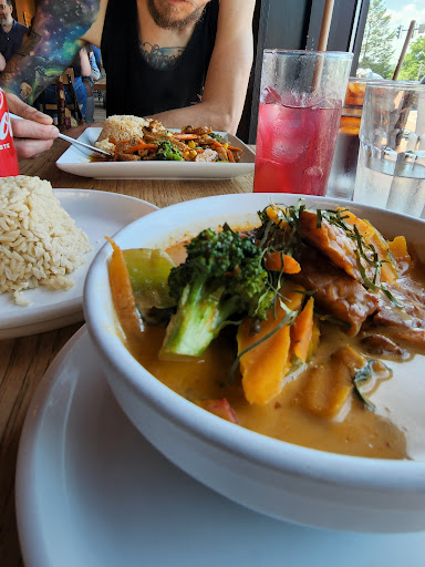 Read moreCouldn't be more pleased with the service and atmosphere here! We arrived at 5pm on a Sunday and we're immediately seated. We decided on the King oyster mushroom tempura as an appetizer, which was overall fantastic! And it was easily enough for 4 people to have a decent share. However we felt as though the mushrooms themselves could have been seasoned more, or at least mixing some salt and pepper in with the batter to enhance the flavor as the mushrooms without the soy sauce were a little bland. My girlfriend ordered the Garlic and Ginger today which she was very pleased with. There was a good portion of fresh vegetables to tofu, and she said that the rice was a perfect pair. I had trouble deciding between the char guay teow and the curry, I ultimately went with the supreme dream curry noodle. Great decision. The dish was bursting with flavors of fresh vegetables, hints of cashew, and warm sweet coconut. The curry was not spicy and overpowering. I would have liked a little bit more curry spice personally but that did not detract from the quality of the meal overall. We felt the price was quite fair for the amount of food we received as well. You can easily make 2 meals out of the entree if you order an appetizer. It's important to note that even if you are not a Vegetarian or Vegan, the meat substitutes (soy, tofu, etc. Are quite tastey and easily distract you from the fact that there is no meat within the meal.