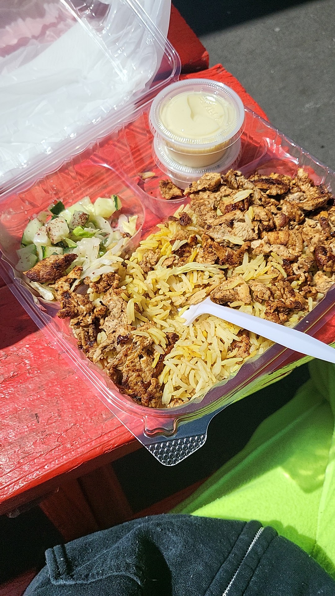Read moreA very nice discovery! The chicken shwarma in a pita was very tasty, as was the beef shwarma. The meats were marinated and wonderfully suffused with middle-eastern spices. The chicken was perfect, but we'd have preferred it if they would have used a better grade of beef. We also had a perfect mideast salad, drenched in lemon juice. The fries were large and cooked just right, and they came with a garlic aioli sauce, which was the perfect foil. We'd also had an order of baba ganoush, but were too full to eat it. Back home with us it went!