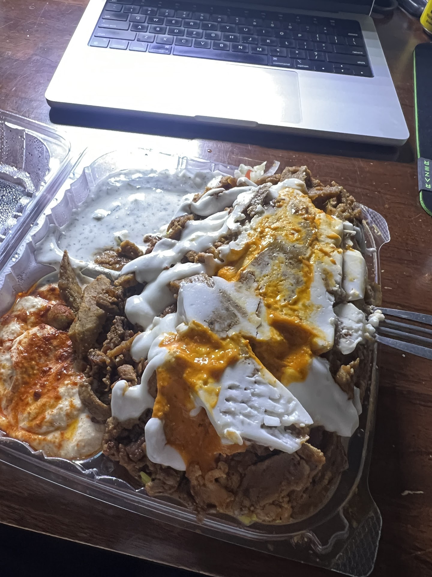 The food is all so good! I got the triple meat plate and while all meat was good lamb was my favorite. My husband got the lamb gyro and it was so big he couldn't pick it up to eat lol. I gave him my pita bread so it would be easier for him to eat so he could dish up the goodies from the other and put it in the 1 i gave him. With that 1 you gotta eat out some of the filling with a fork first. Only complaint is the food is a bit too slightly especially the rice and why I'm knocking off a star. Between the rice and the meat together was a little overwhelming for me personally. With sauce it's a little less noticeable but still kind of overpowering. Definitely going back for more of...