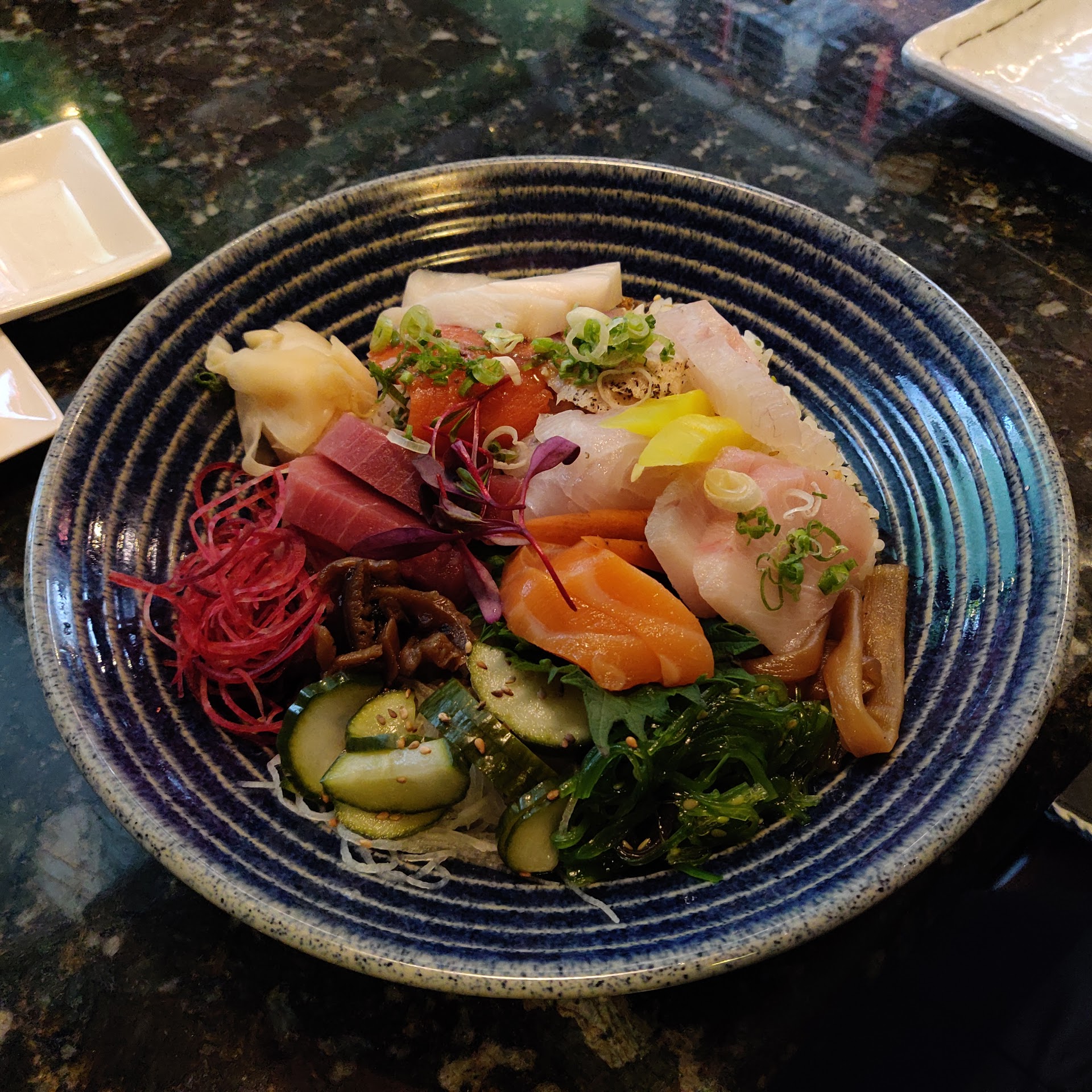 We had the unagi don buri and chirashi. Both were excellent, much to the relief of my husband who has found most of the eel to be had in Portland to be pretty meh. The serving was generous, the fish was well if not expertly cut, and the variety of fish on the chirashi was surprising (eg, two different types of salmon). The chirashi presentation was nice and well arranged with decorative veggies and an edible flower. The fish was all extremely fresh and the texture was good.
