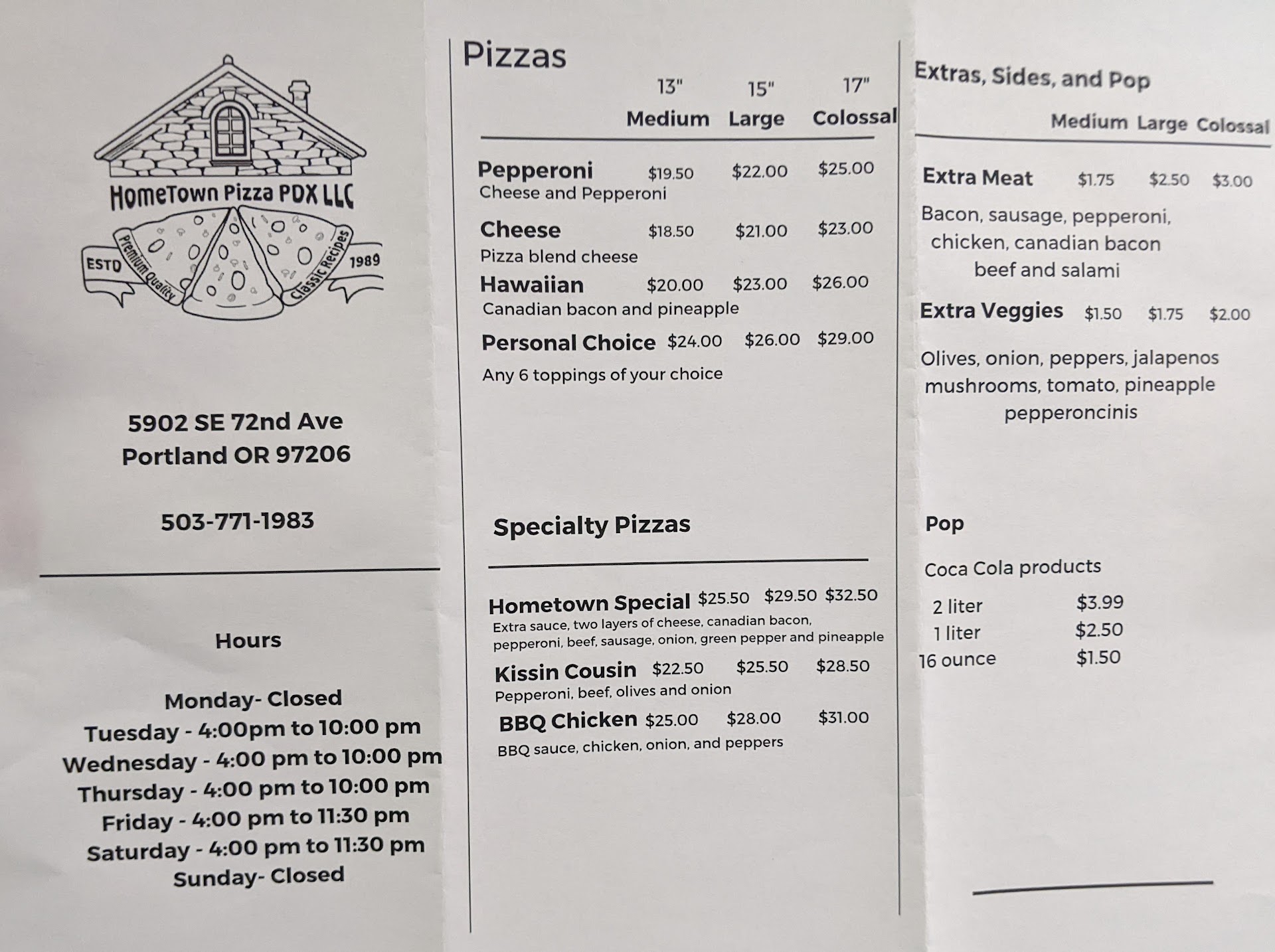 Read moreThe staff (and owner?) were very friendly. We ordered the Hometown Special, w/out pineapple, and the Veggie. We were told they'd be ready in about twenty minutes and they were. Both pizza were great. They also cut the pizzas in smaller slices than is normal, these days, but are the size I remember when getting pizza growing up. The Mt. Scott area has many great pizza places, but this is our new favorite.