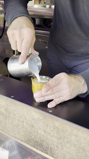 So now in 2025, I’ve moved to Seattle and I took a day trip down to Portland for the first time since 2022. The first thing I did was walk up to JJ, tell him he’s the best coffee artist I’ve ever met in my life, and that he should make whatever he wants for me, to surprise me. He asked me 3 simple questions: any allergies, sweet or nonsweet, and what size.