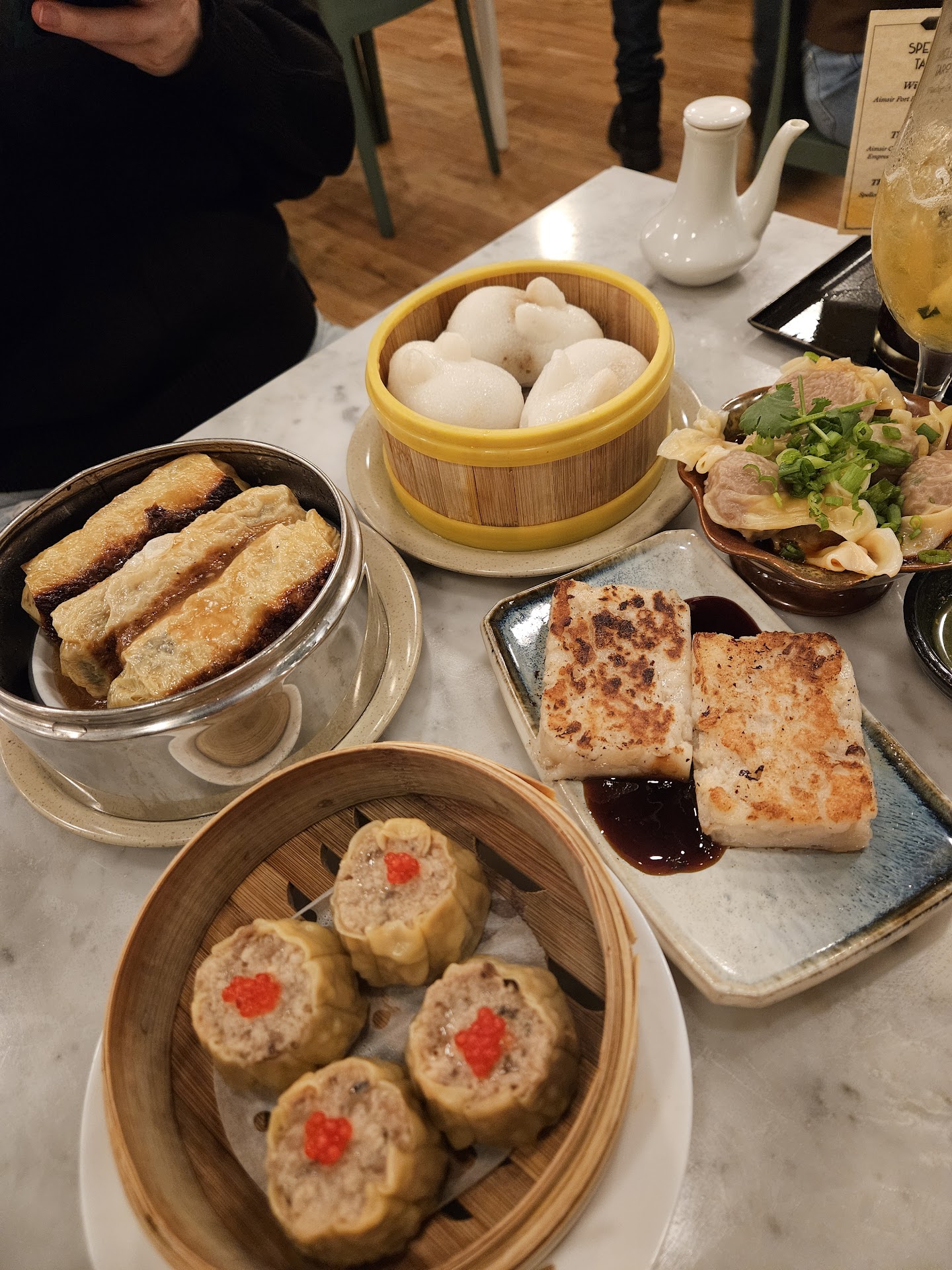 Read moreSuper cute spot! Gorgeous bar with a small space for 10 tables on the 2nd floor. I would definitely recommend a reservation. The food was mostly really good. Firstly, the steamed chili oil wontons were both my and my sisters favorite dish! The meat was really flavorful and she (not vegan) said she would've never guessed it was vegan. I personally also really loved the bunny buns and the hint of sweetness they had to help cut all the other salty/spicy food, but my sister and the gentleman dining next to us both thought they were underwhelming. The shumai and tofu skin rolls were both super yummy! I loved the slight crunch the noodles gave in the tofu skin rolls. The sauce that comes with the shumai was our favorite sauce so we ended up using it on most of the dishes. The turnip cakes were way too starchy/crumbly compared to traditional turnip cakes, and extremely bland. Traditional turnip cakes usually have little bits of veggie and meat in them but I didn't see any bits of anything in these.