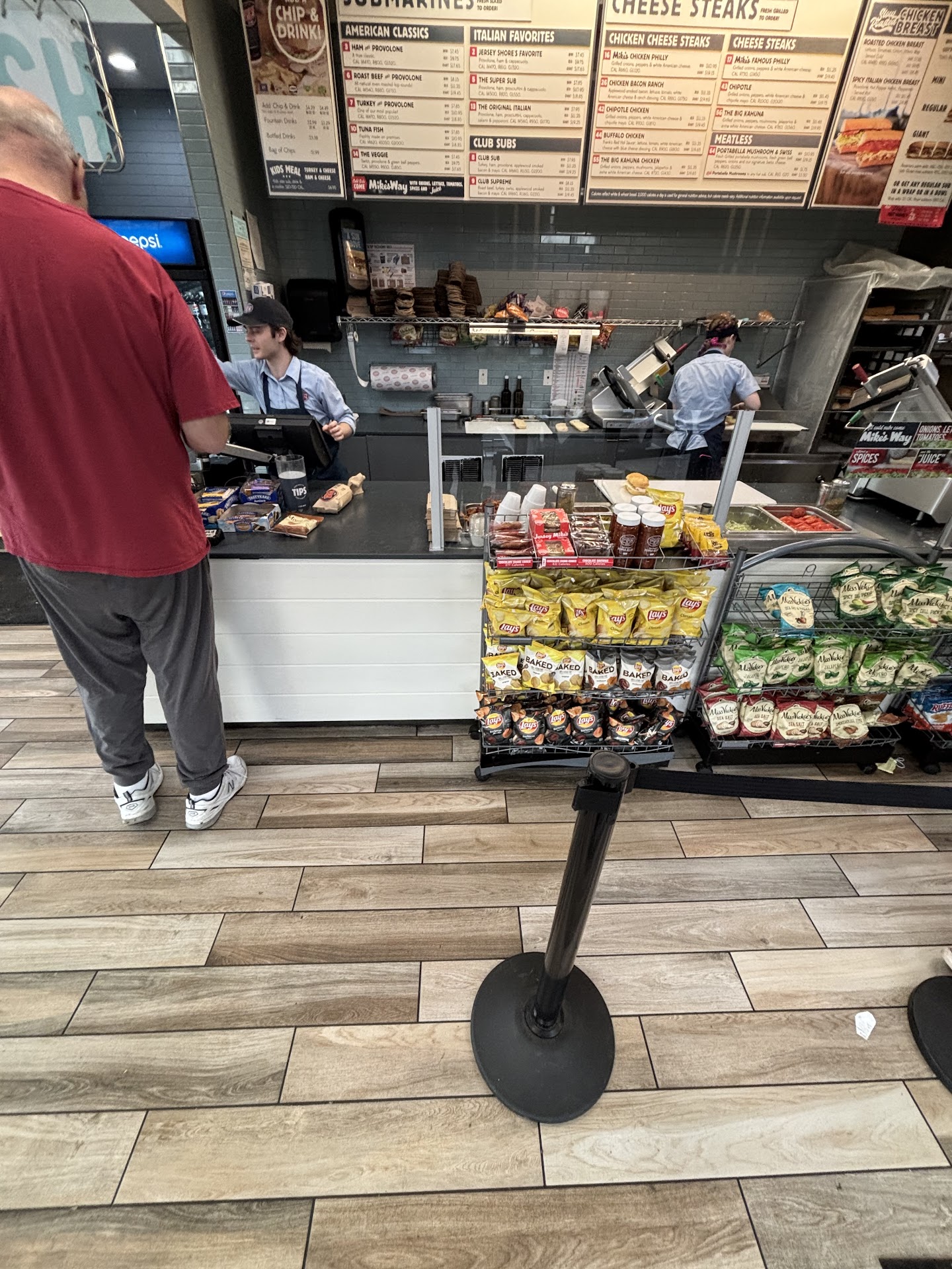 Read moreI will never go back to this Jersey Mike's establishment. Went there for lunch and they didn't appear overly busy but they were very unorganized. The person at the register was helping make sandwiches and shouldn't have been making them because he clearly didn't know how. They were advised multiple times by other staff to clean off the cutting board where they make the sandwiches which was covered with all sorts of food debris, including vinegar. They only then cleaned it off just a little bit but then when they put my bread on to make my sandwich they put it right on some vinegar that they didn't wipe off. You shouldn't have to tell someone making your sandwich to clean their work area appropriately. Then after I said what I wanted on it, the person started putting on random toppings that I didn't ask for, which I had to tell them to stop and take them off. It was very frustrating to...