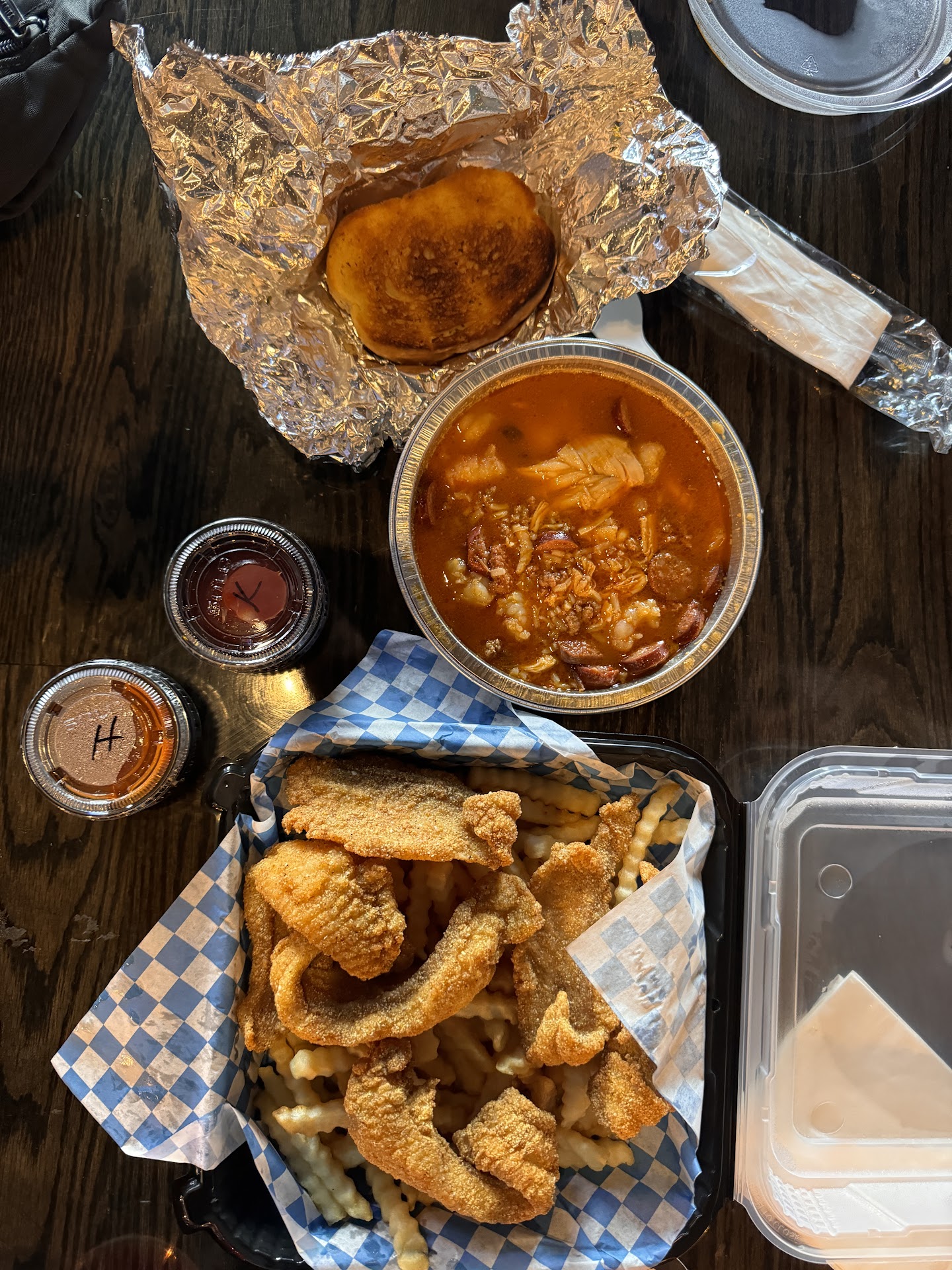 My partner and I ordered the special fried cajun catfish basket and jambalaya and WOW it was so flavorful and just the right amount of kick in the jambalaya! Could not...