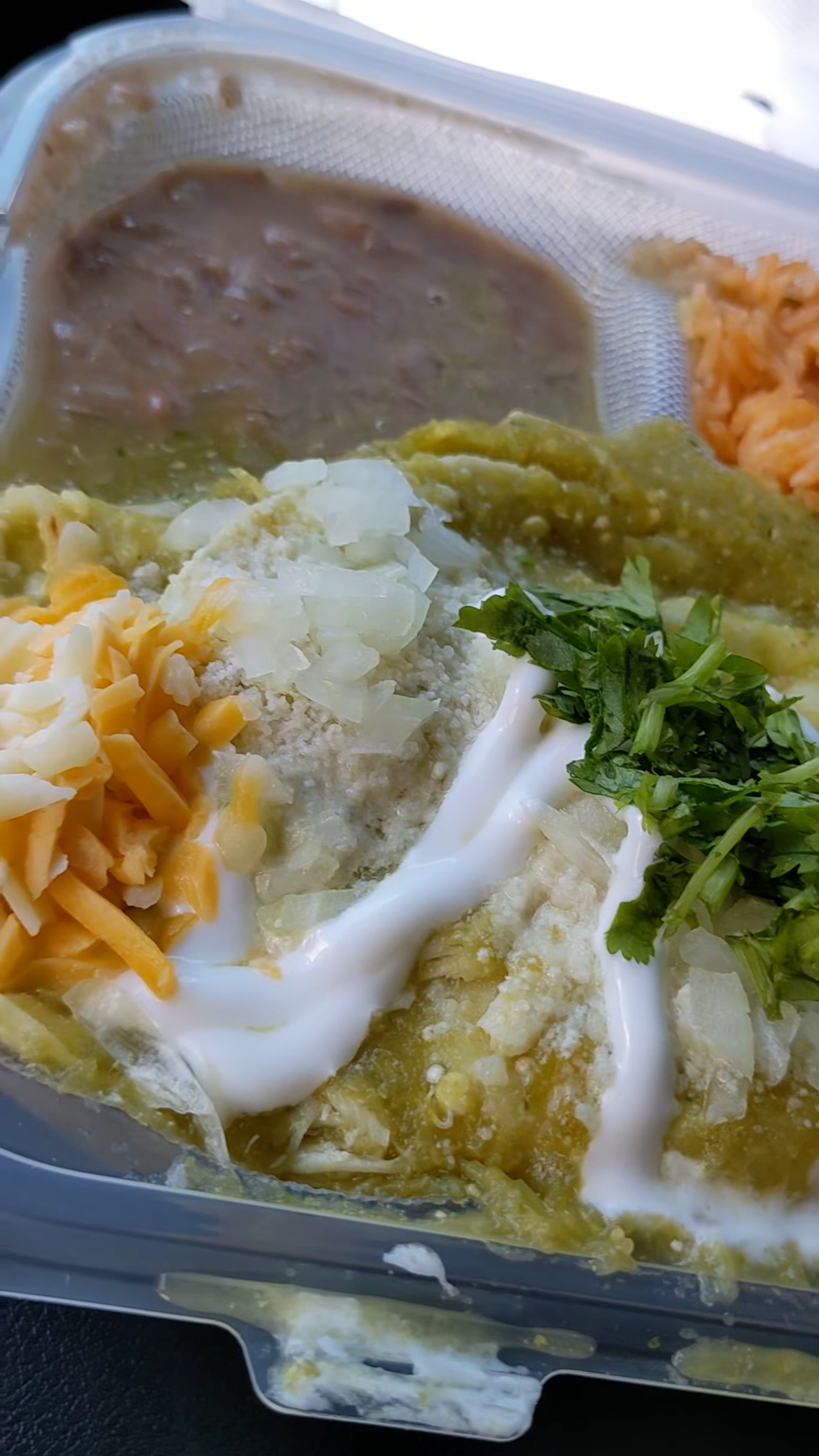 Had the taco plate with asada, pollo, carnitas & marinated pork. Tortillas lightly fried crisp. Cilantro, onion, radish & the meat. Green avocado salsa. Lime wedges. Black bean, rice and salad.