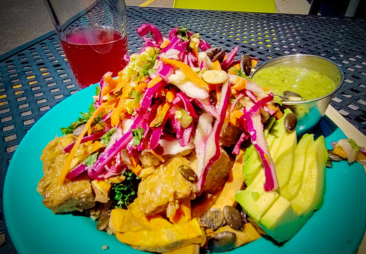 Fun, casual healthy dining. The bowls are so good and healthy. The bowls have lots of veggies and all of the ones I’ve had have included broccoli. Bowls I’ve tried include the comfort bowl (Mexican influence), Korean (my favorite) and Thai. There are many more and I’ve tried most of them they are delicious and you get a generous portion. The Tempeh Royale burrito is my favorite. It includes kale, black beans, brown rice and flavored tempeh. You can choose your tortilla type. They’ve got a red sauce, green sauce and a habanero. My favorite salad here is the Kale Cesar salad. It does have very crunchy flavored garbanzo beans it’s topped with. The food is healthy and delicious. Nice staff, there’s mostly indoor seating and a couple of outdoor seats. This restaurant is in the Hollywood district and is centrally located. Line 75 on Trimet goes right past.