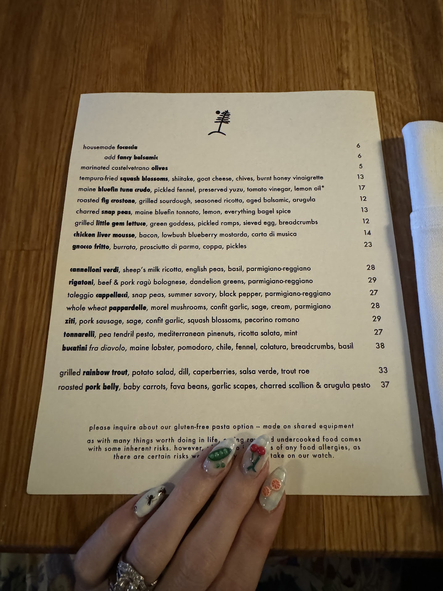 My two friends and I arrived a few minutes early for our reservation, and we were greeted by a hostess, who was unfriendly from our first interaction. We went to the waiting area as instructed and noticed that another party of guests waiting to be seated had some cocktails. After no one approached us for our drink order, my friend tried to go to the bar to order espresso martinis. She was intercepted by the hostess, who said they only have "house" espresso martinis, that included tequila and amaro (but no real espresso because they don't have an espresso machine, which is inherently odd for an Italian restaurant). My friend ordered three of these, and then asked the hostess to come explain the drink ingredients, because she had never heard of a tequila espresso martini before and was not sure if she was relaying the ingredients correctly to us. Then the hostess listed the ingredients to us in an antagonistic manner, and when I tried to clarify if the tequila was forward tasting in the drink, she replied in a patronizing tone that "it tastes like all those things mixed together." We were taken aback by her attitude and lack of care / knowledge. She then notified us that the drinks were already being made, and so to cut this unpleasant interaction short, since she was visibly annoyed and did not seem to want to help us understand the drink or amend the order, we said we would be fine with them. A while later we received the drinks while still waiting to be seated, and sure enough they were disgusting.