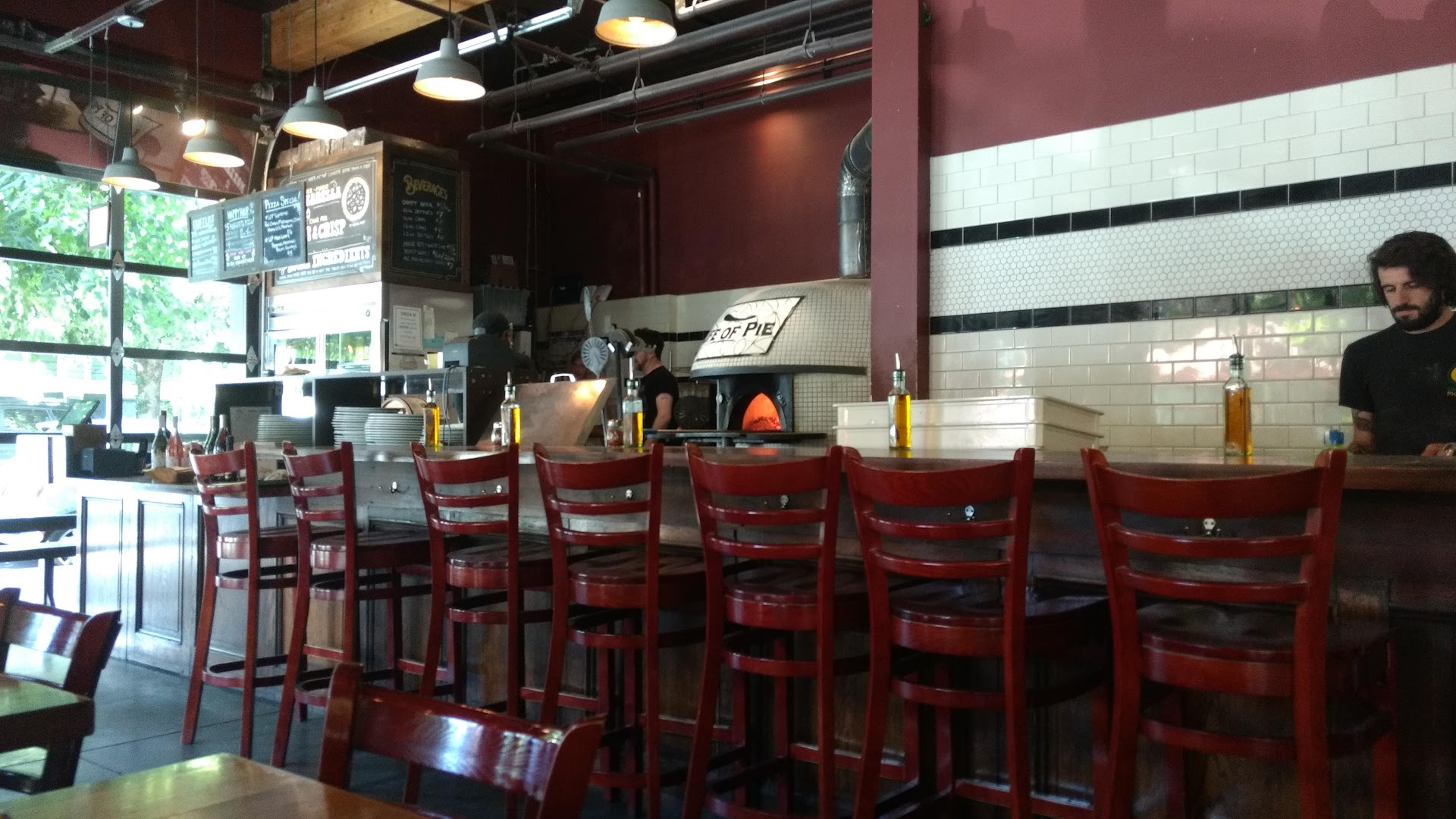Read moreThis would have to be one of the worst dine-in pizza experiences I’ve had since I was 17 and went to a Pizza Hut in Montana where our meal was interrupted by a rat! The inside is fairly spacious. Probably about 15 small sized tables they can put together to form bigger tables. The atmosphere is LOUD. Hard to hear each other. I entered the restaurant around 5:40pm on a Thursday. It was fairly busy- the tables and bar area was filled. We placed our order at the counter, was given a number and was told they’d grab a table for us as soon as they had one. Only had to wait about 5-10 minutes to get a table- Not bad! The worst part was we didn’t even see our food until 6:50pm. Over an hour from when we ordered the food. No one checked in on us during this time ether. When our food was delivered, a waitress came by to check if we were enjoying our food. By the time I was on my second slice, another waitress came by (I figured this was a manager who would apologize for the delay, I was wrong) told us to move to another table so they could make room for a larger party, WHILE WE WERE IN THE MIDDLE OF EATING! are you kidding me? You had a whole hour to move us to a different table and decided to wait until we had begun to eat our pizza? Awful customer experience. No apologizes. It seemed like this place was run by a bunch of 20/30 year olds who just wanna make pizza and collect tips...probably why they want you to tip at the beginning. The pizza itself was actually fairly good. Unfortunately our dine in experience was so poor we probably weren’t able to fully enjoy the pizza. Don’t dine in. Just order ahead of time...