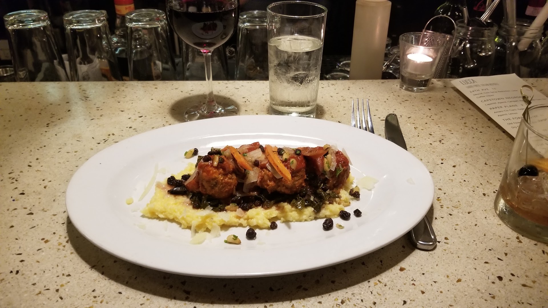 I had someone visiting from out of town and came here on the recommendation by a friend that it was a “solid neighborhood restaurant,” so I thought I’d give it a try. We had 7:00 reservations on a Wednesday night and on our arrival, the restaurant was full and bustling, but at our particular table, we were able to converse easily and it never felt uncomfortably loud. We started by sharing a Margherita pizza that had a thin, crisp and nicely blistered crust with a lovely chew. For my entree I had the Tagliatelle Bolognese and my friend had the starter of grilled peaches wrapped in Prosciutto as her entree and both were delicious. For dessert, we shared the Lemon Budino and the Affogato made with Gianduja gelato and they both REALLY hit the spot, particularly the warm, luscious and wonderfully tart lemony Budino. High marks on everything we ate.