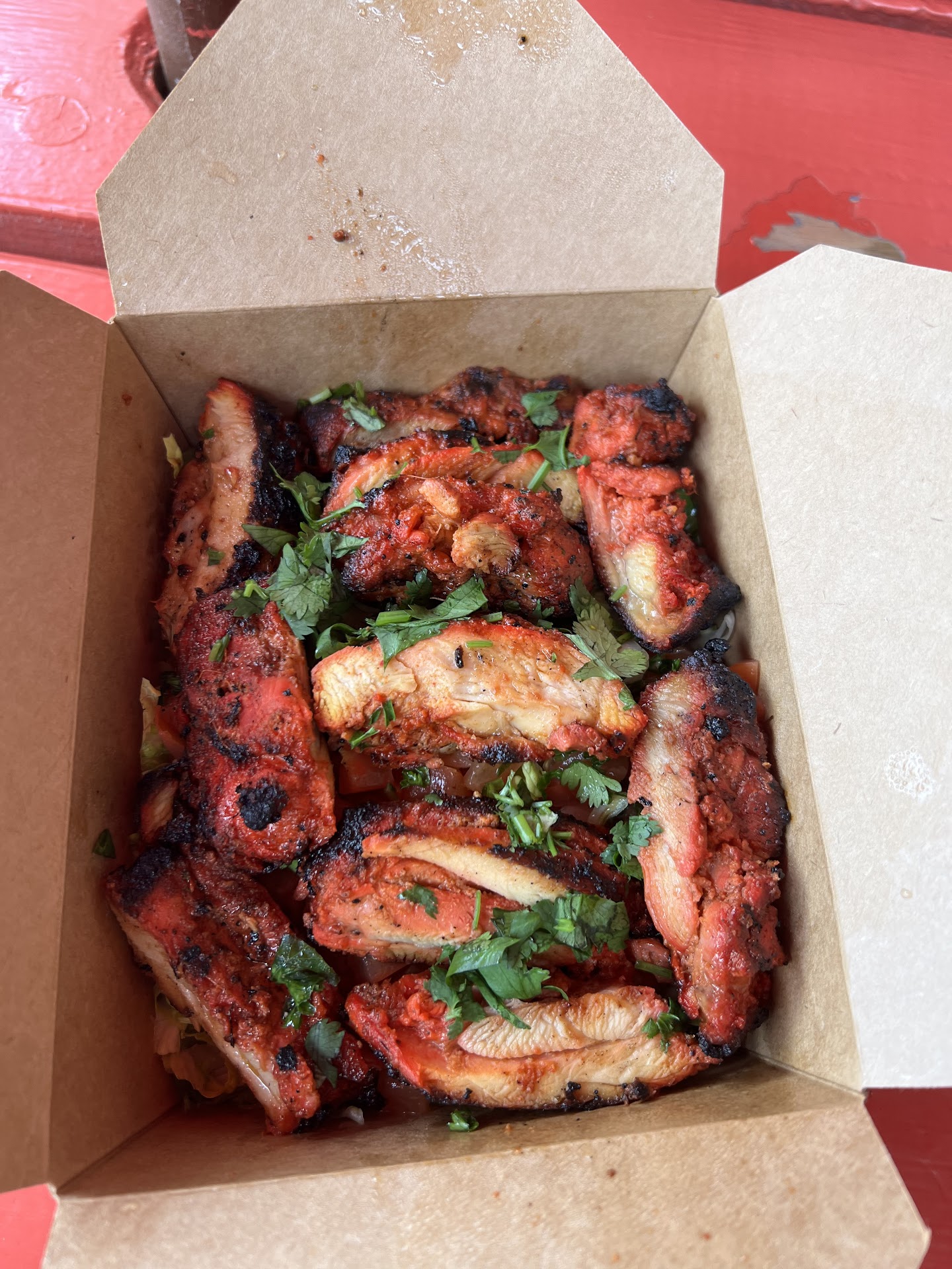 Read moreOrdered vegtable Korma and what I got might have bee na korma at one time, but it tasted like they scraped the bottom of a two week old vat some something that was blasted on a hot plate for too long. I ate enough to not be hungry anymore but can't / wont call it korma. Also scared of the half dozen rats living under the cart. Service was wonderful, but $5 is too much for a vat of plain basmati and the main being that bad... I'll find another...