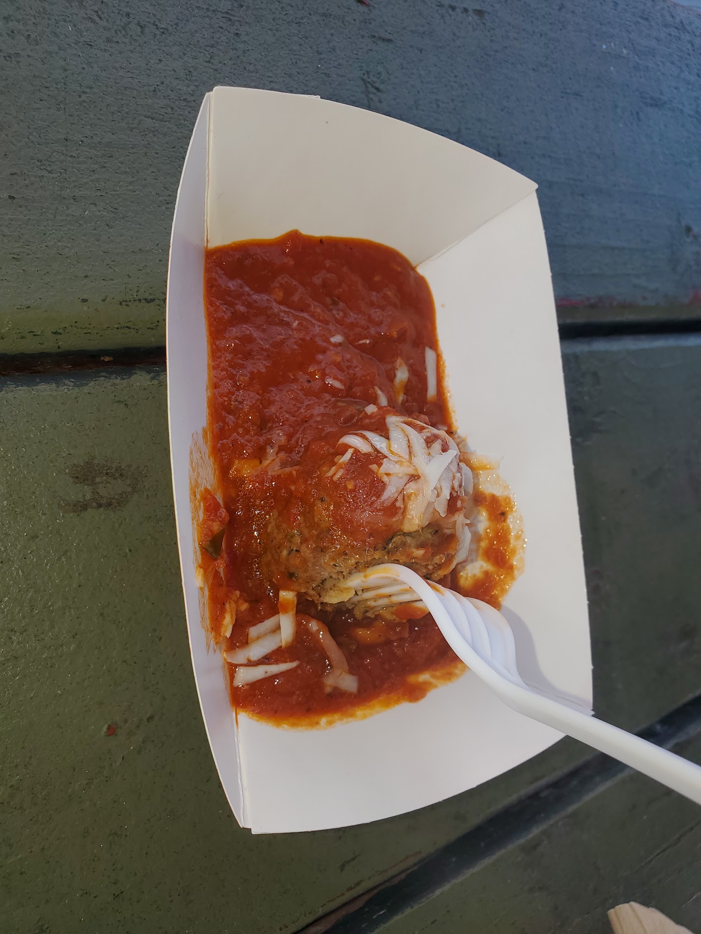 Ā Ā Ā Read moreMy guy has been looking for a good Italian joint on our side of town for a hot minute. I walked down to the beer porch and here it is! There are tons of vegetarian options here with a choice to add meat. I just tried the sole meatball ($3) but they sell them in larger quantities for less or you can add them to your pasta dish. I fully plan to go get meatball subs here-- I didn't want to enjoy it without my partner. The staff was tickled that I ordered just a meatball and they were swift for other orders I saw placed not just my silly one. They were actually invested in my enjoyment. When it's warm out I like to go to several good carts in a day like tapas so...