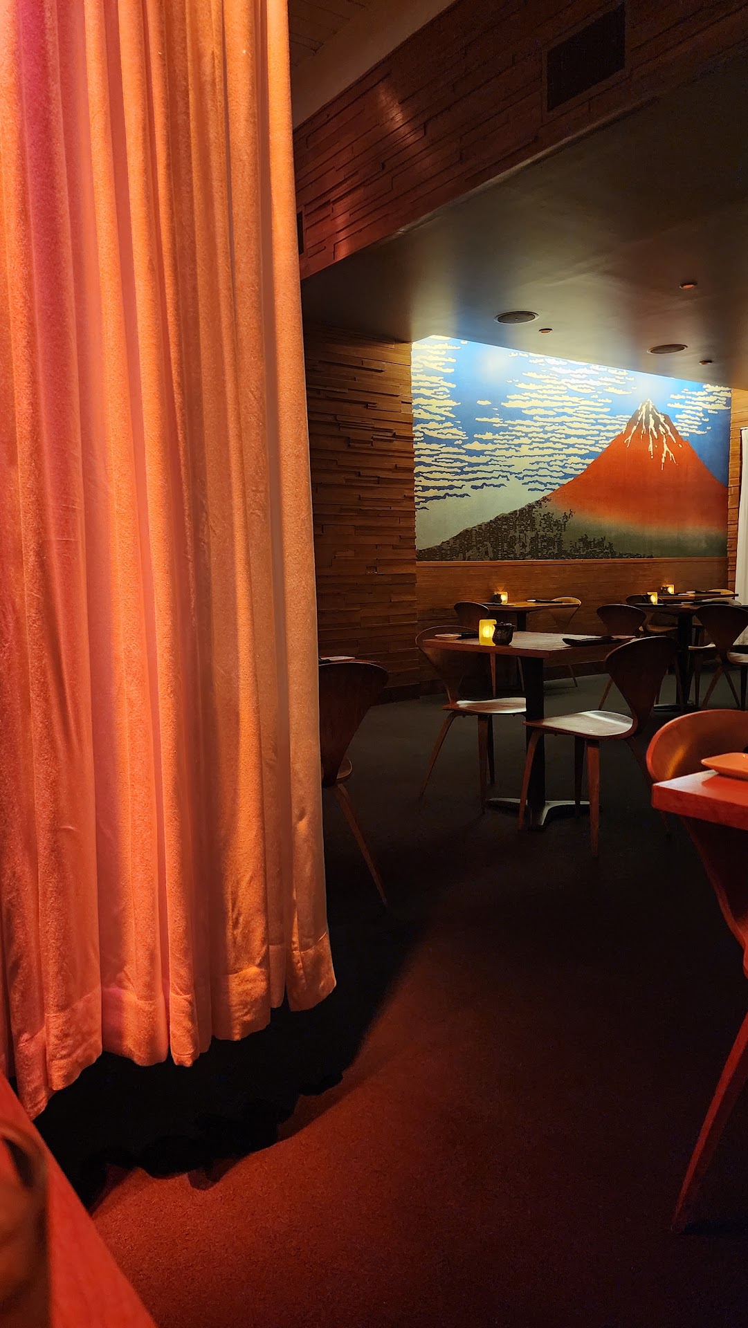 Situated in a bustling area of Oregon, the restaurant's exterior is unassuming, and you might almost miss it if not for the subtle yet elegant sign. However, stepping inside, you are transported into a cozy and inviting space. The interior is a harmonious fusion of contemporary design with nods to Japanese aesthetics. The lighting is warm, and the decor includes elements of traditional Japanese art and design, creating a sense of cultural depth and authenticity. While it's not a large venue, the intimate setting adds a personal touch, making it a perfect place for a special dining experience.