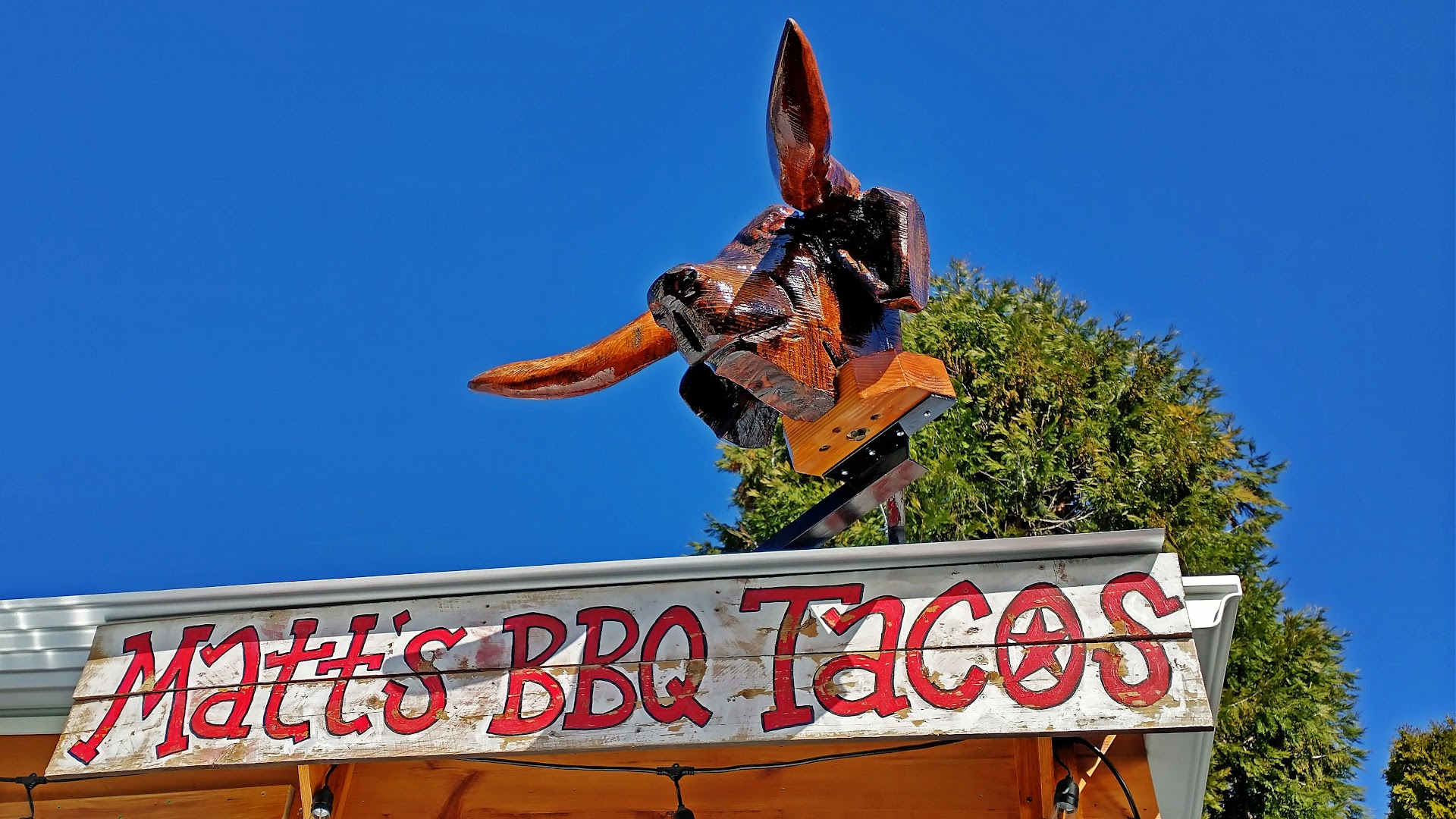 Matt's BBQ Tacos is located toward the back of the food cart pod, very Texan looking, as they serve Texas-style BBQ. You order from the touch screen by the serving window, or you can order from their website. The wait time is shown above it, and as it is a popular spot, the wait time can go up significantly in a matter of minutes. You get a text when your order is ready, which is convenient.