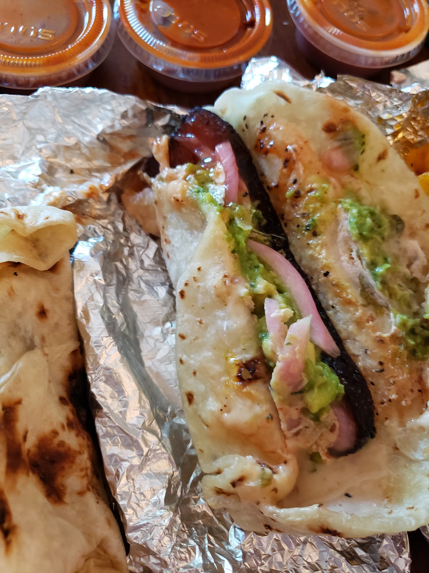 SERVICE/ENVIRONMENT - There's a bar/brewery, and about 4 other food trucks with a seated area for you to enjoy your meals. We ordered ahead online, which I would highly recommend as there was a decent line when we got there, but it looked like people were still waiting on their orders. Some tacos online suddenly disappeared and were no longer available from the start of our order to when we checked out. They have to-go sauce containers, but I had to ask them to refill as they were all empty when we got there.