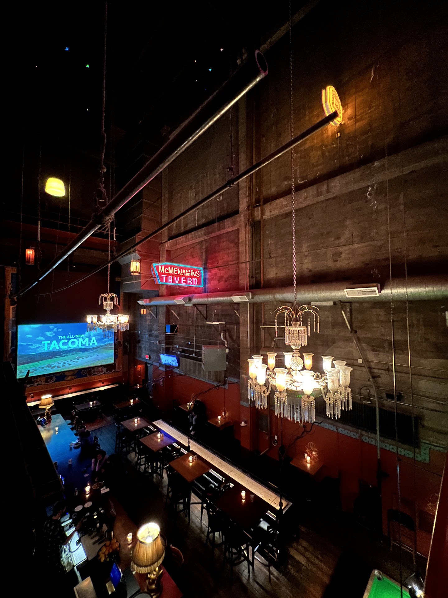 Excellent place to play a few rounds of Pool! They have 4 pool tables but you wouldn’t know it unless you explored the upstairs areas. They have two tables downstairs and two in separate rooms upstairs. Check out the upstairs area for a completely different experience. In addition to pool, they have an extremely long shuffleboard table and some pinball machines in the foyer. The bar is stacked with spirits of all kinds, there is beautiful art on the walls, screens everywhere (including a humongous drop down projection screen during big games), and insanely high vaulted ceilings with fabulous chandeliers. The ambiance is far and above what the normal hole in the wall bars can achieve which makes this place a must see. Ryan was our server and helped to make the experience seamless. You can order food which is delivered from the Mcmenamins next door. I believe pets are welcome at the outdoor seating area. Thanks to the staff and management for making this trip to the bar an adventure...