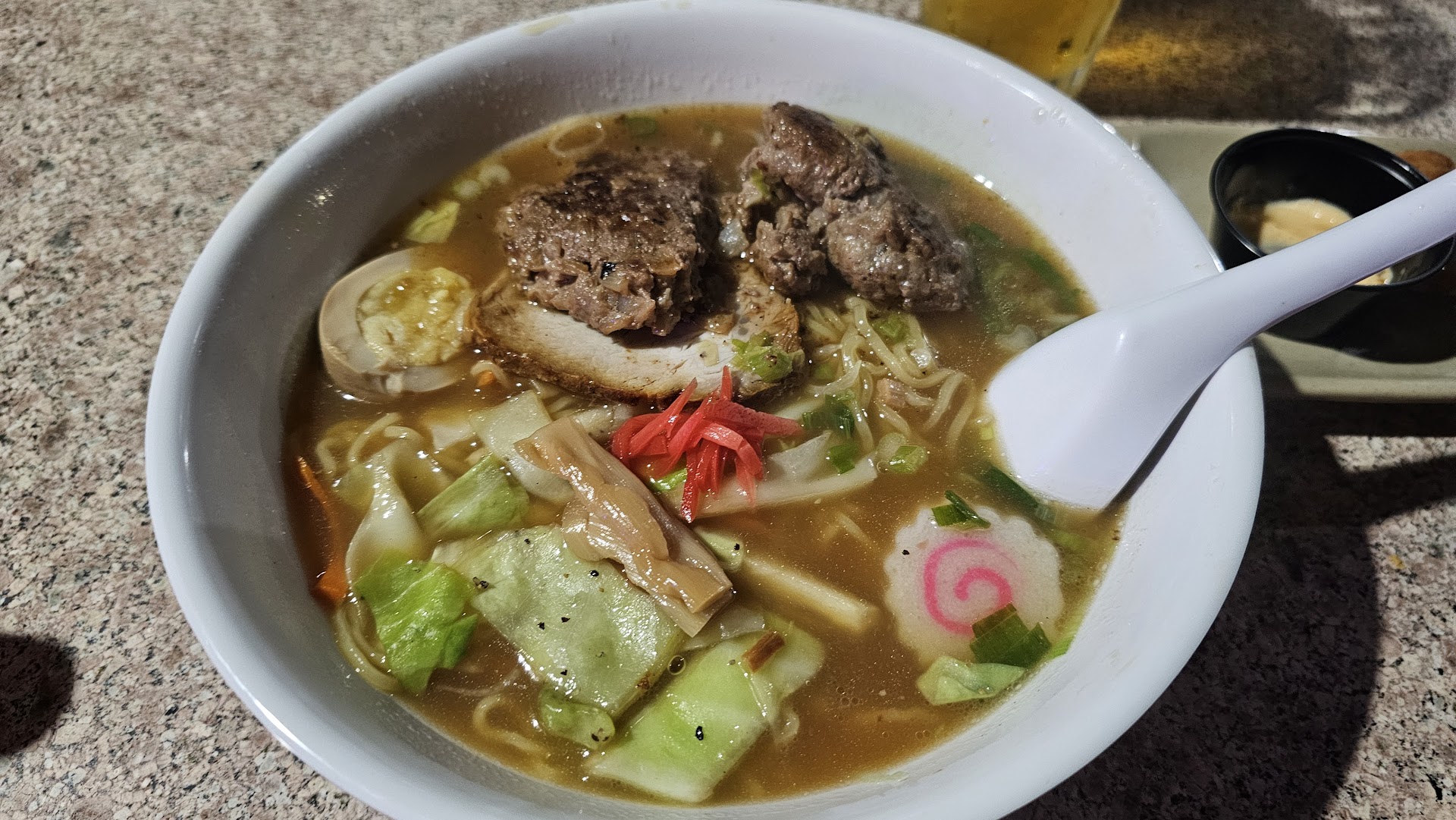 If you're new to Japanese food/ramen, you may want to leverage Google for some menu items (or just swallow your pride and ask the staff :-) ). The friends I was with mentioned they'd come here once before and were disappointed that their order was missing soup broth. It turns out items on the menu indicating "no soup noodle" are served without broth (like Yakisoba).