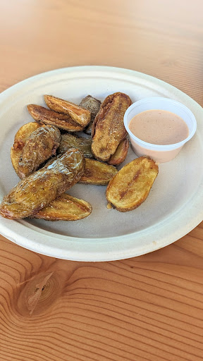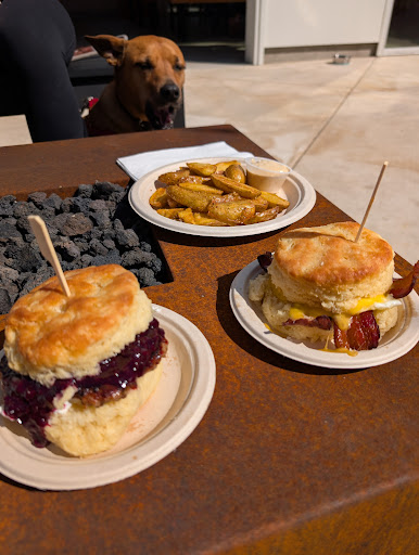Read moreFood was delicious and well priced, ready in about 10 minutes. The biscuit was larger than expected, and the jam was a brighter yummy red color than in the photos. The size would be good for breakfast or a smaller lunch, but you would likely want a side if you're pretty hungry. The potatoes were super crispy, even after 20-30 minutes. I really liked the sauce, and it also tasted good dipped in Butter Chicken from the Indian cart. 🤣 The chef was really nice. Would definitely...