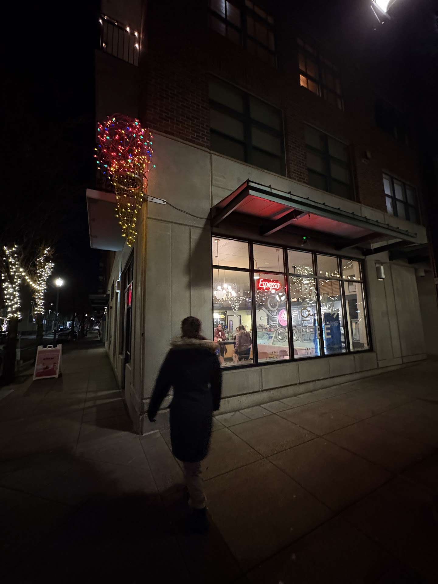 My first impressions were quite positive, and the area itself is nice, especially with a fountain nearby that provides a great spot to cool off. However, after spending some time in the area, I would advise women against going out at night, as it can become a bit sketchy. That said, this isn't the fault of the business.