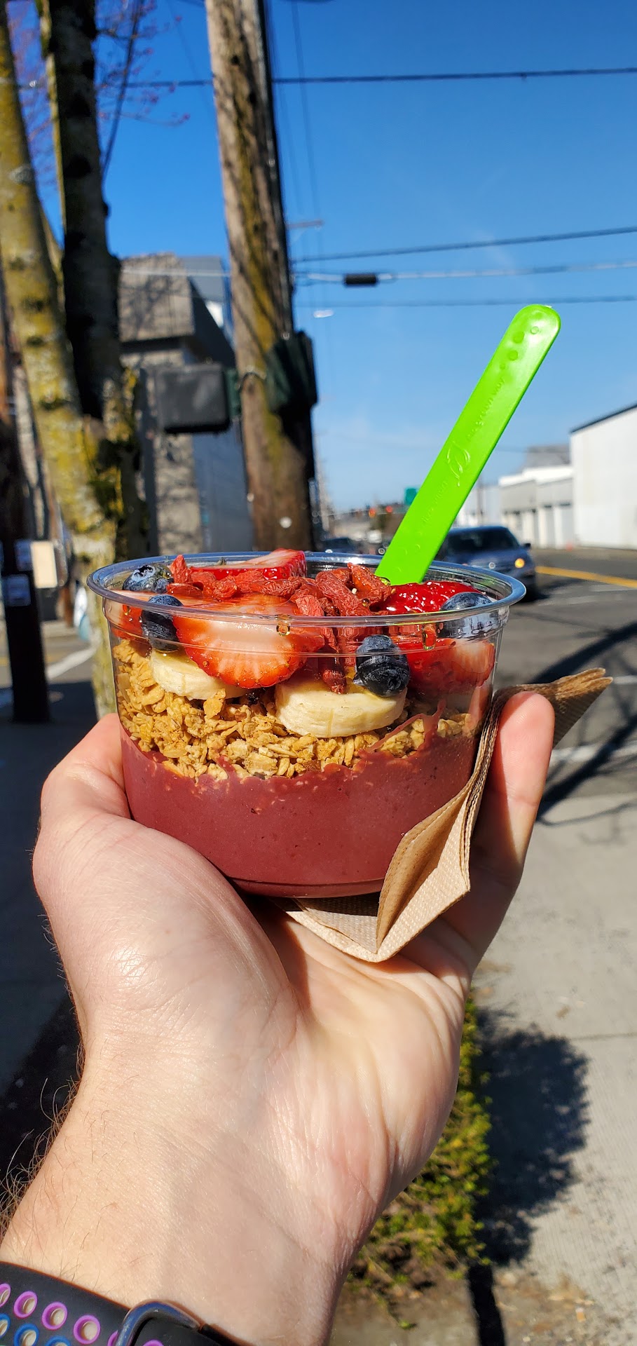 Read moreThe bowls were pretty good. I got a Jesse bowl and my friend got a rip city bowl. The ingredients tasted fresh and delicious. We would have liked to see some green options on the menu such as Spinach. The seating was also very limited - only about 6 in the little porch. This is more of a grab the bowl and walk kind of place, but, alas, it was raining so we were stuck under the covered porch sitting elbow to elbow with strangers. It was otherwise a delightful place with a definite...
