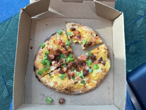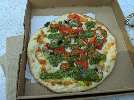 Read moreIt was my first time trying this place. My boyfriend has had it before but I hadn't heard of it and we don't have any in San Diego as far as I know. Basically, you choose a pizza from their options but can add or subtract anything you want. You get a free coffee with the breakfast pizzas. They all come in sizes of mini, mod and large. We initially took the mini ones but soon realised these were really small, even for me (I'm a small eater). We got the Amelia (red onions, sage, sausage, cheese) breakfast pizza and the Tristan (pesto drizzle, red peppers, onions, cheese, mushroom and I asked for spicy chicken sausage).