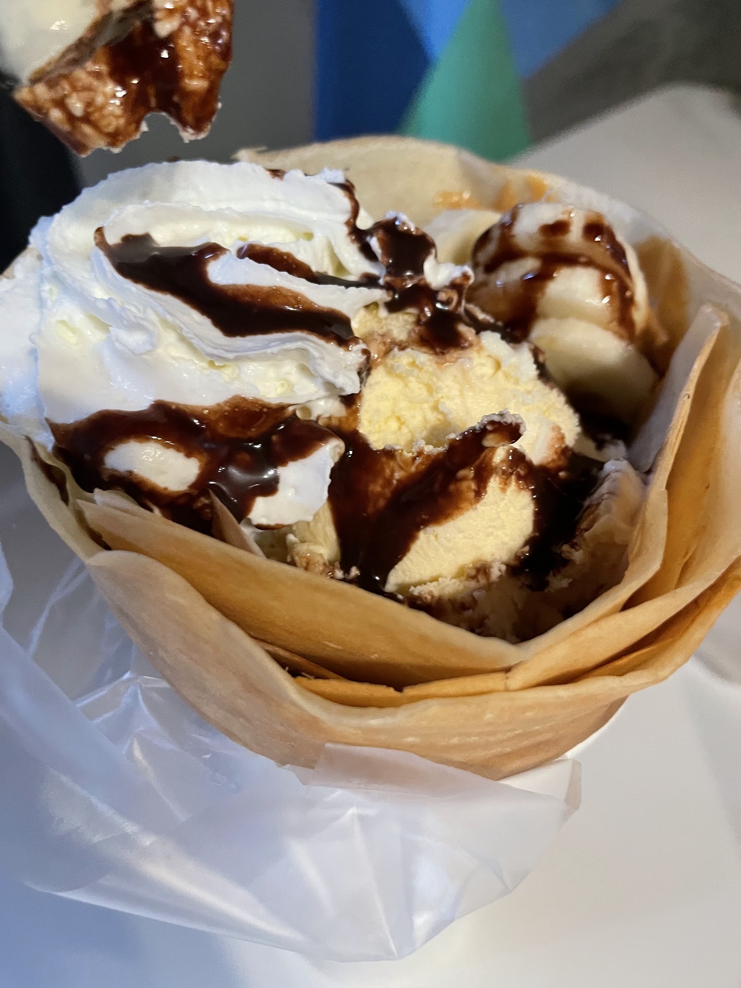 *The photos aren't in order. The last one of the ice cream crêpe was from 2018 which is why there are seats in the background. It used to be a dine in but it changed during COVID. My most recent review is based on the June, 2021. So, if this is some other year, it might...