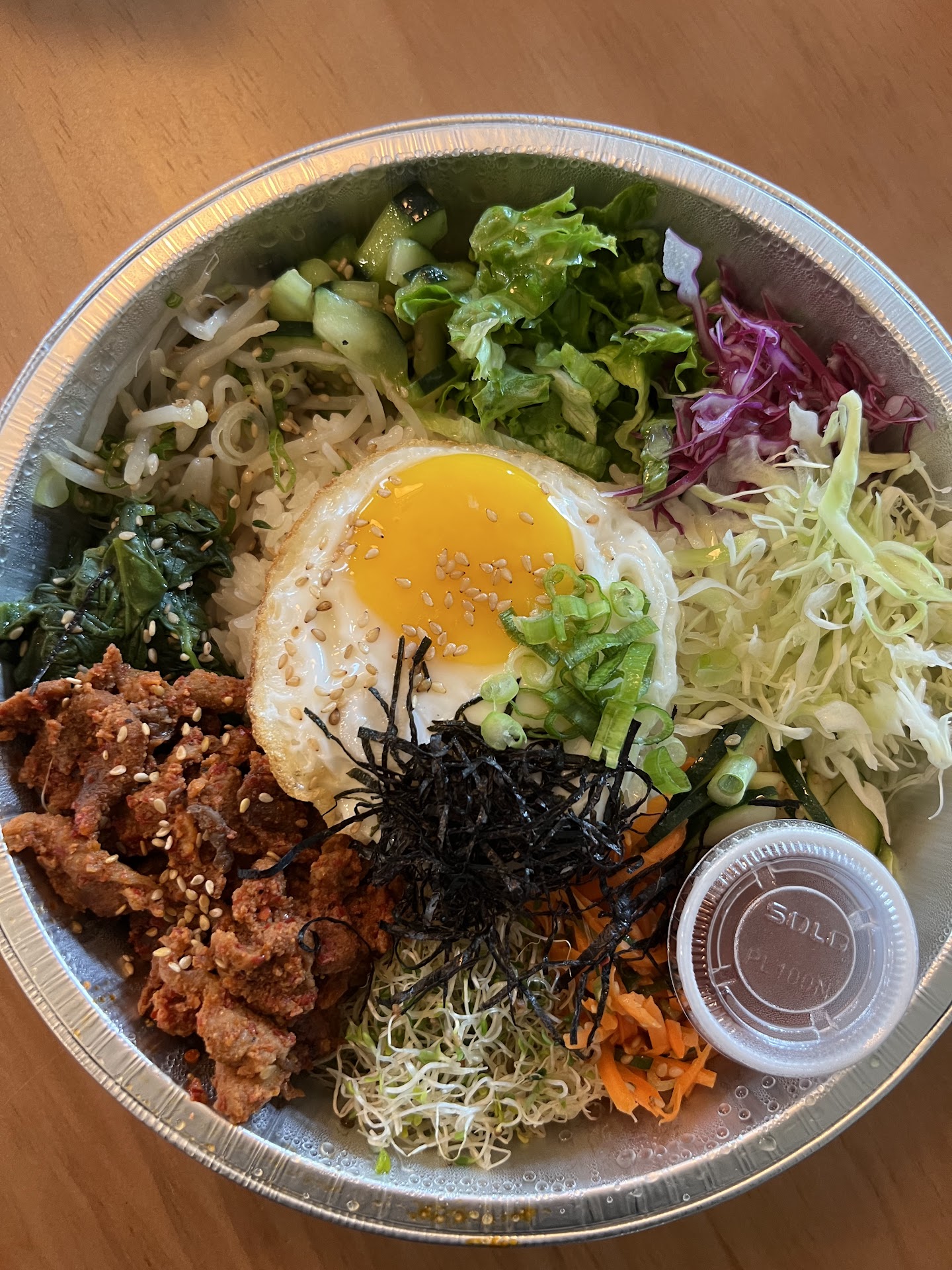 I ordered through DoorDash after finding this place is close to Matcha Premium Maiko. Good ratings and I now know why! Two bibimbaps to go: one was tofu and the other was spicy pork.
