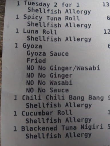 Read moreI ordered food for delivery from these folks and was really excited to try a new sushi place near my house. I ordered a TON of sushi. I also have a shrimp allergy and diligently read through the ingredients in each roll and only picked those rolls without any kind of shellfish in them. I also noted on nearly every roll that I'm VERY ALLERGIC TO SHRIMP. The sushi was actually pretty decent til I bit into one of the salmon rolls and got a whole mouthful of shrimp tail. My mouth and tongue started itching and swelling within about a minute, and I spent the next 24 hours with terrible stomach cramps despite spitting it out immediately. I messaged the restaurant the next day. This was now well over a month ago. I didn't get a refund, didn't get an apology, no mea culpa, nada. They never wrote me back. This is literally the kind of thing restaurants get sued over, the kind of thing that can legit kill a person, and they couldn't even be bothered to write me back. Never. Ever. ...