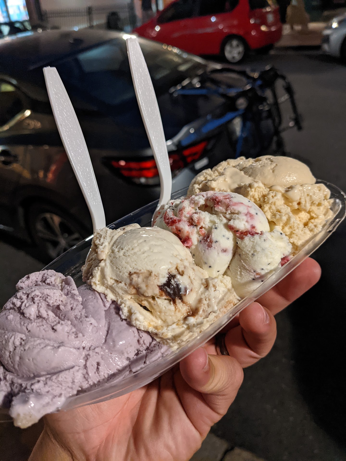 I have gone to this establishment twice and one experience was absolutely amazing. I love all the unique flavors and the staff was amazing. Even though it was a very busy day, we felt welcomed and taken care of. . The second time was not so great. Hence the 4 out of 5 stars. The staff member on duty, was clearly not having it. We had a larger order for 5, that 2 of us were getting. The first 2 requests were of a single scoop of the same flavor. The attendant gave us the wrong flavor. And then when we said heyy we didn't want the orange, it was the raspberry. He aggressively tossed the scoops back into the orange bin and grabbed the actual flavor and smacked the cups on the counter. My sister and I were just kind of shocked and quietly waited until he got the other one and continued with our order. The rest went smoothly ... until we got into the car. He had scooped one of the other flavors wrong and gave a different family member basil instead of sweet cream. 🤦♀️ At that point they just suffered and ate the Basil... I really like this place and will continue to support it. I don't know if that guy was just having a bad day or what. I just did not think the attitude was warranted. We were extremely patient with the guy. And I feel bad that the customers behind us had walked out when they saw his...