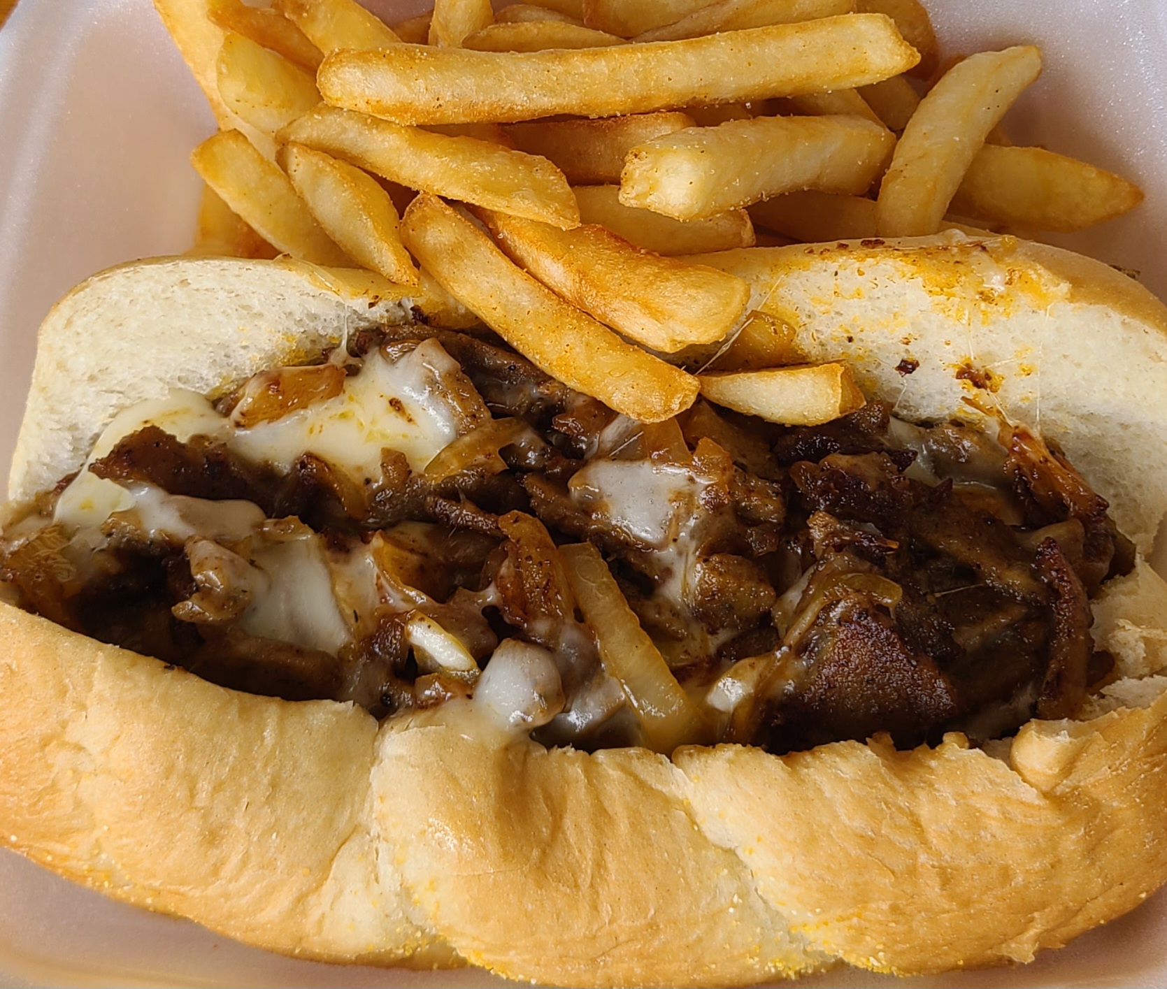 When my order arrived, I was immediately captivated by the sight and aroma of the food. The Philly cheesesteak was a masterpiece, featuring thinly sliced, tender beef, sautƩed onions, and a generous layer of melted cheese, all nestled within a soft and perfectly toasted roll. The flavors melded together beautifully, creating a heavenly combination of savory, meaty goodness that was simply irresistible.