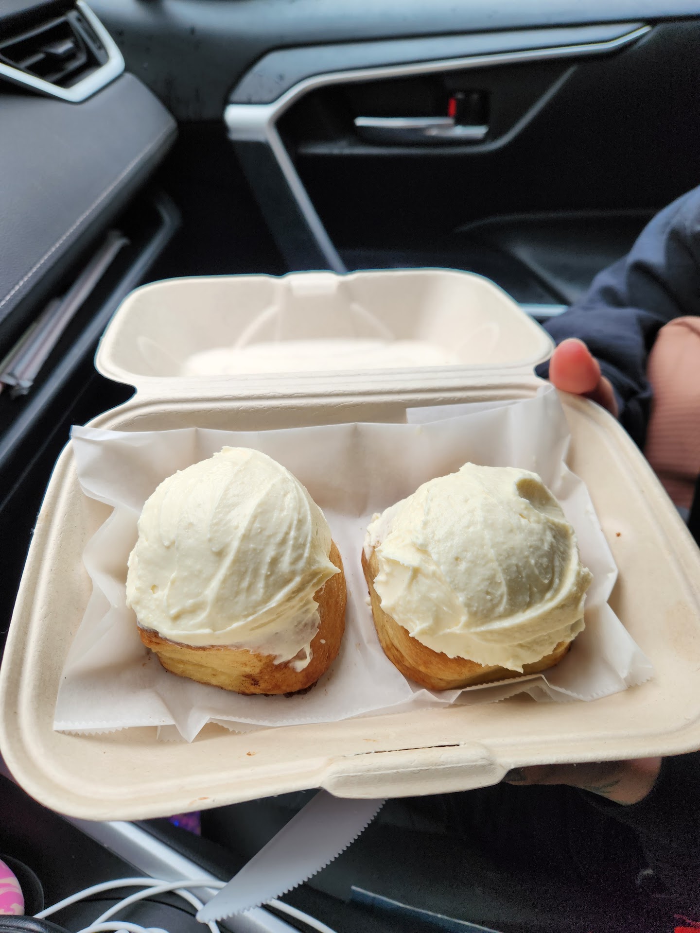 I really loved coming to Nana's, I am already excited to visit again and try more of her delicious goodies. I had the Roll with the Hole and the bagel was perfectly toasted and soft, the bacon was delicious and perfectly cooked, the tomato lovely and fresh, and the perfect amount of cream cheese. My partner had the breakfast sandwich with cheddar egg and sausage on a croissant and he gave me a bite and it was amazing, the sausage is out of this world. Also I HAD to have one of her famous cinnamon rolls and I tell you guys, it truly didn't disappoint. I also had a mini pumpkin pie, cause I'm a pumpkin girly and I can't pass up pumpkin when I see it and it was SO GOOD. I was honestly so delighted with everything I'm already excited for my next visit. Not only was the food good, the atmosphere was top notch, me and my partner chatted with Nana and a regular who was there also and the vibes were immaculate. Just lovely people and excellent food, I really can't recommend this place enough. Thanks Nana for all your hard work!...
