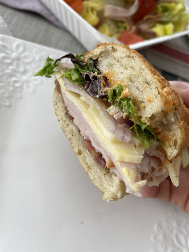 4th visit again i was not greeted. I stood in what i thought was a line; it was not. It was an employee and a manager. Still no greeting, no apology etc... I got the turkey with caramelized onions and apple. It was made as ordered but the execution made it difficult to eat like a sandwich. Inevitably made a mess with the oversized apple pieces falling out.
