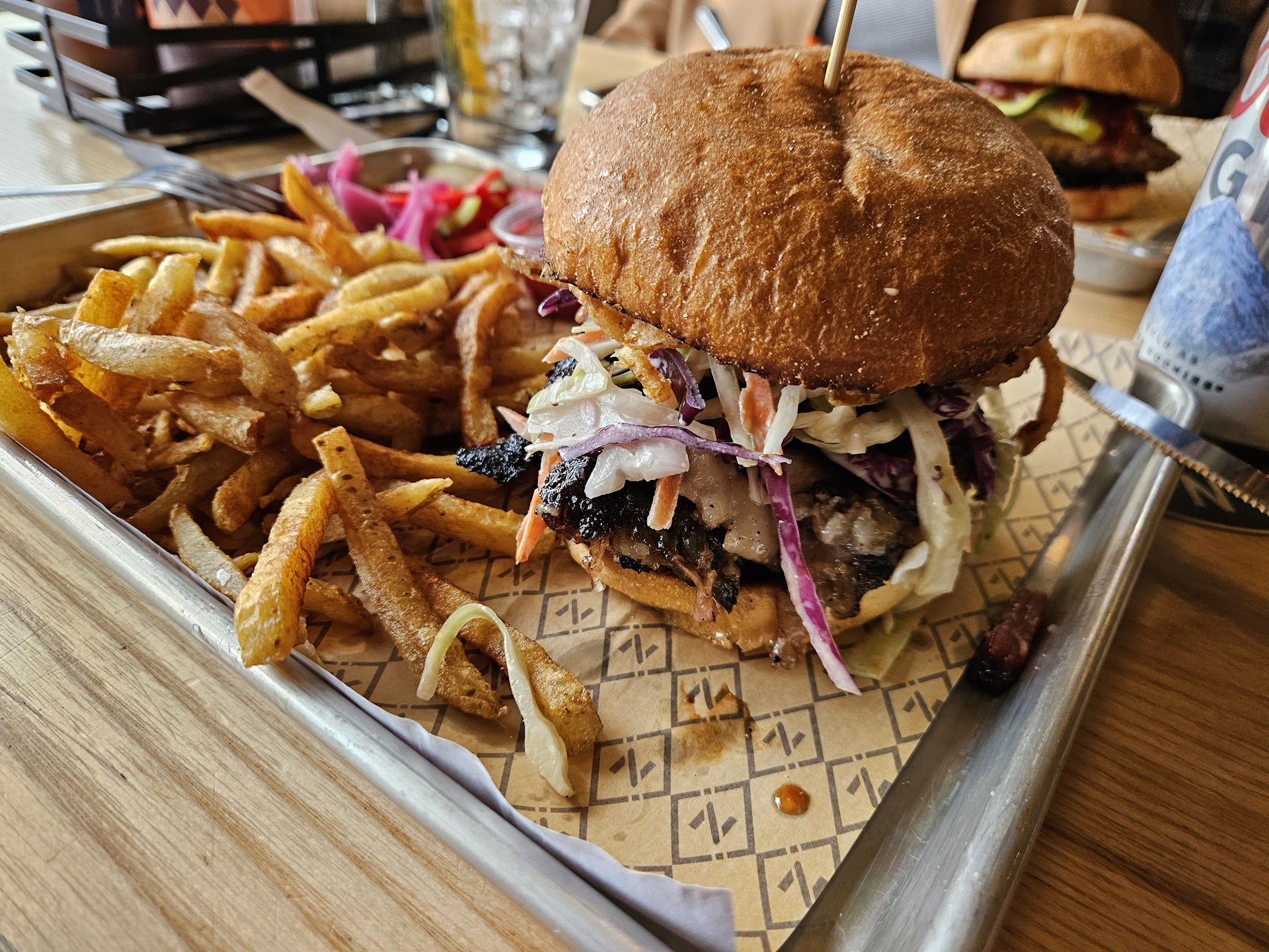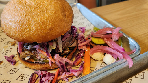 Read moreFirst and foremost, the interior of the new location was well thought out and flows just right. Menu hits all the bbq musts, and those pizzas rolling out of the kitchen look like a must try on our next visit. The wife enjoyed her orange thyme old-fashioned, and my coors light was chilled to perfection. We ordered the meatloaf cheeseburger, beef brisket sandwich, and hand-cut fries. All we can say is, wow, wow, and wow! Sandwich portions were just right, and the accompanying pickled vegetables were a nice addition. Those fries done in beef fat were surprisingly good. Service from Reegan throughout our meal was paced just right. We both noticed one of the owners or manager jumping in to help anywhere he was needed, and he stopped by to check with diners, including us, about our meal experience. That is how a restaurant...
