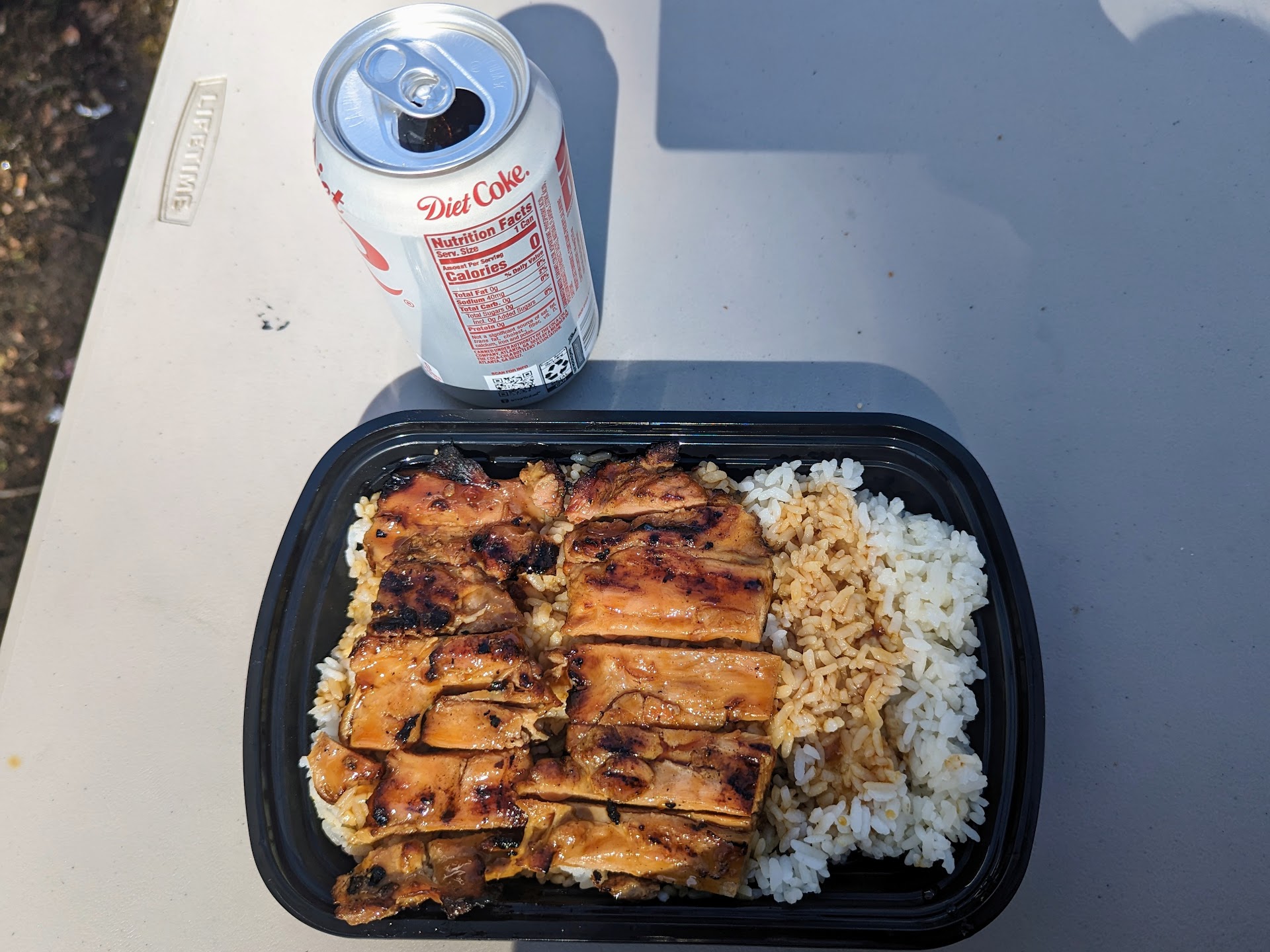 Permanent corner food cart dishing up bibimbop, Korean BBQ, teriyaki chicken & other to-go platters.