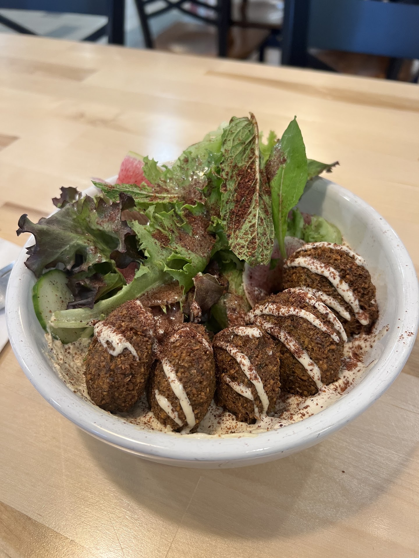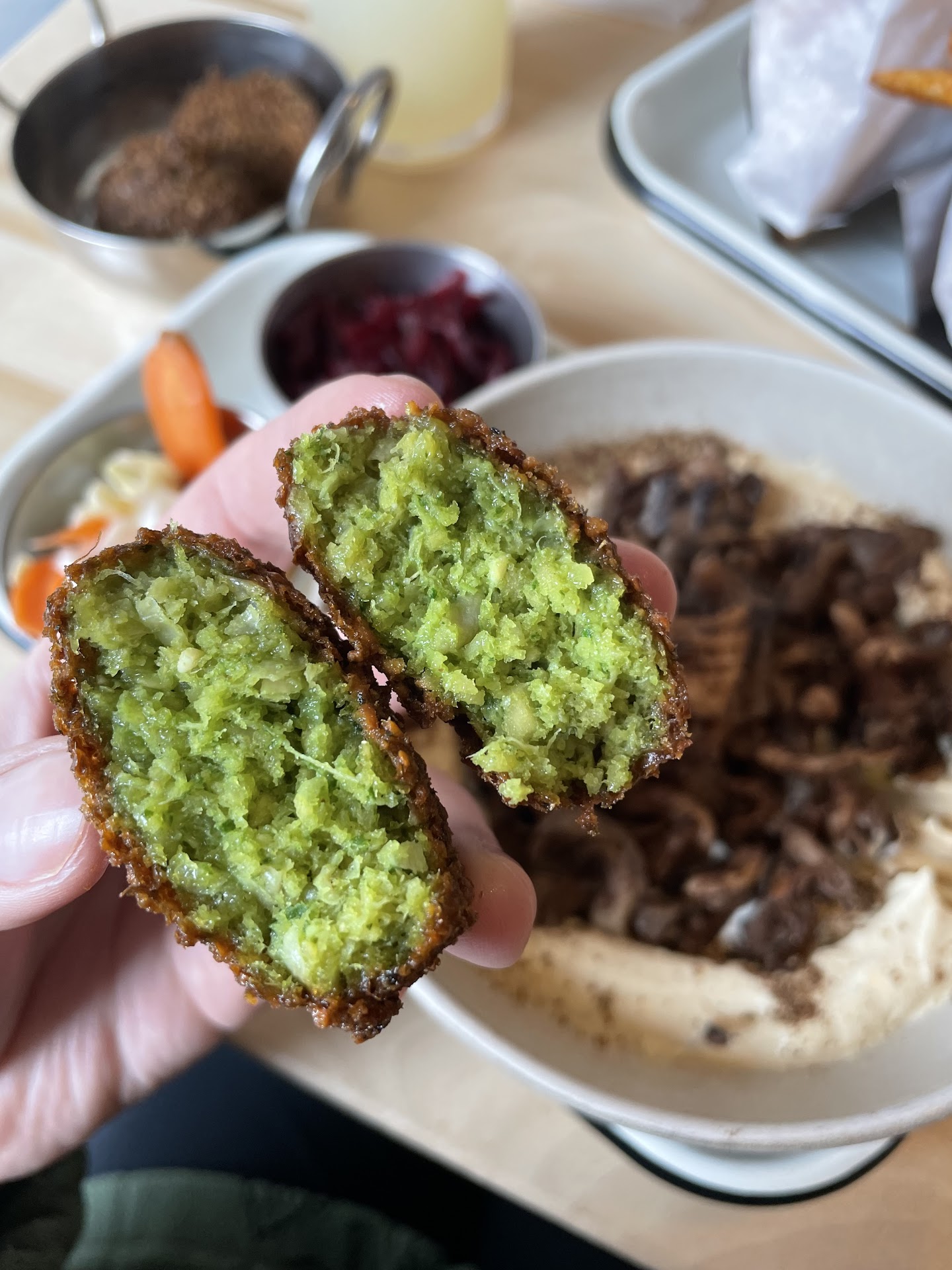 The Old School falafel was all good, and we especially liked the flavorful, herbaceous filling of pickled beet root in the Nuru Falafel. The portions for all the falafels were decent for the price.