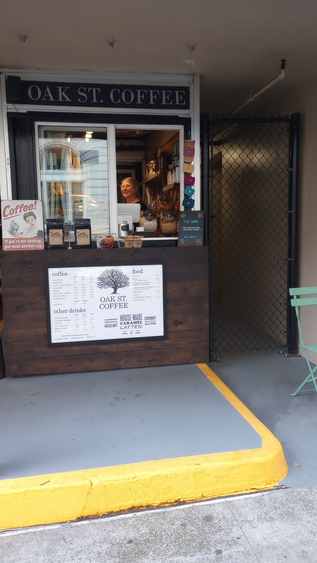 Ā Ā Ā Read moreSo happy to find Oak Street Coffee right around the corner from my hotel during a short trip. This is a cute small shop run by lovely Michelle. Itās a small walk up shop tucked into a building right next to a parking lot so itās easy to miss. Her coffee is local, freshly ground, delicious and served with a smile. I was only visiting town for a few days and she remembered me and even what I had ordered the day before. Such a personalized touch and she even make s her own homemade caramel sauces for the lattes! This is a must stop for anyone in the downtown Portland area. Skip the Starbucks and go...